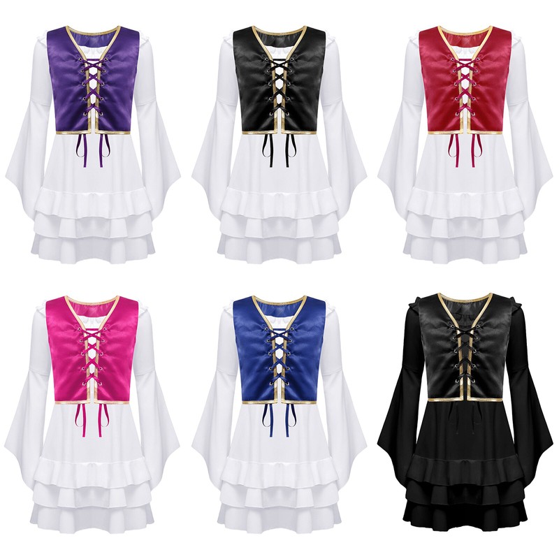 The circus costume with golden buttons and lace decoration details make girls look attractive.