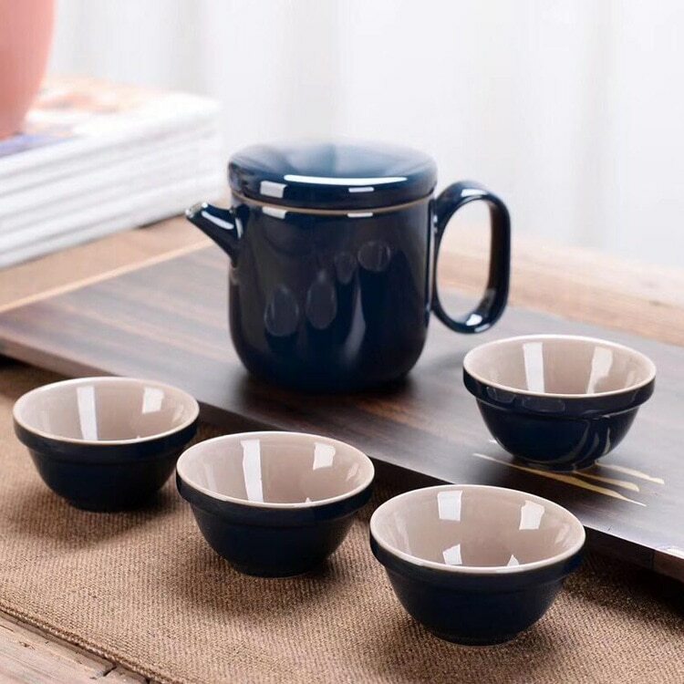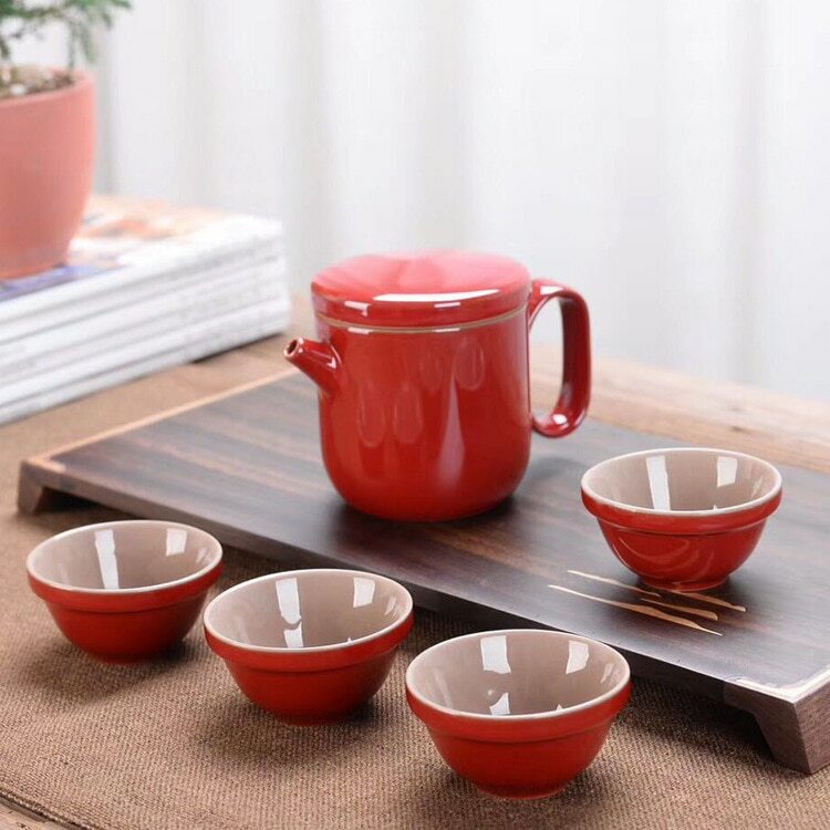 Chinese Travel Ceramic Tea Cup Puer Tea Pot Portable Tea Set Drinkware