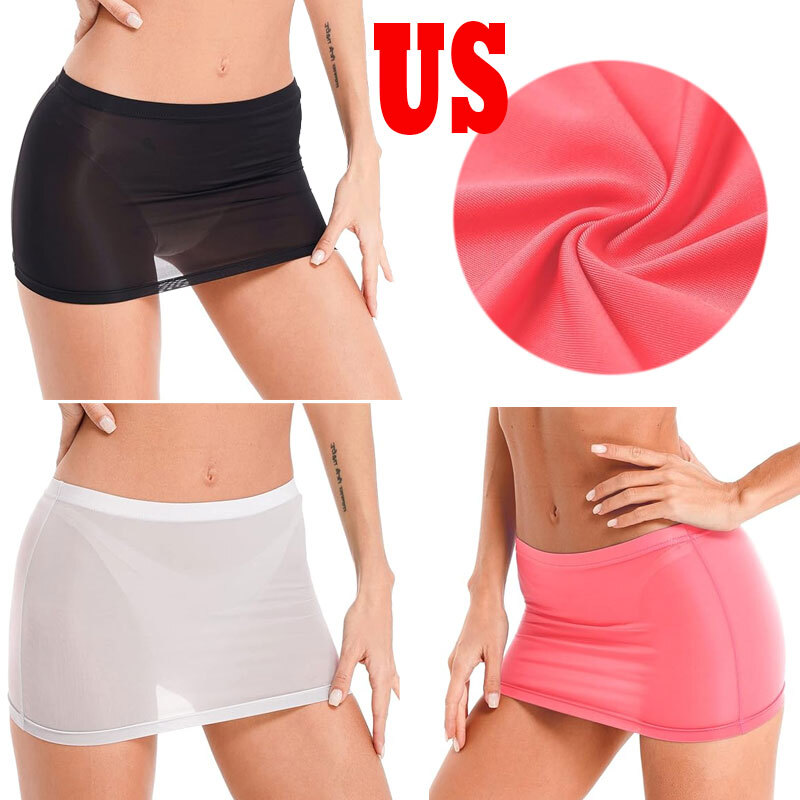 Women See-through Flared Skirt Clubwear Glossy Shiny High Waist Zipper Back Miniskirt.