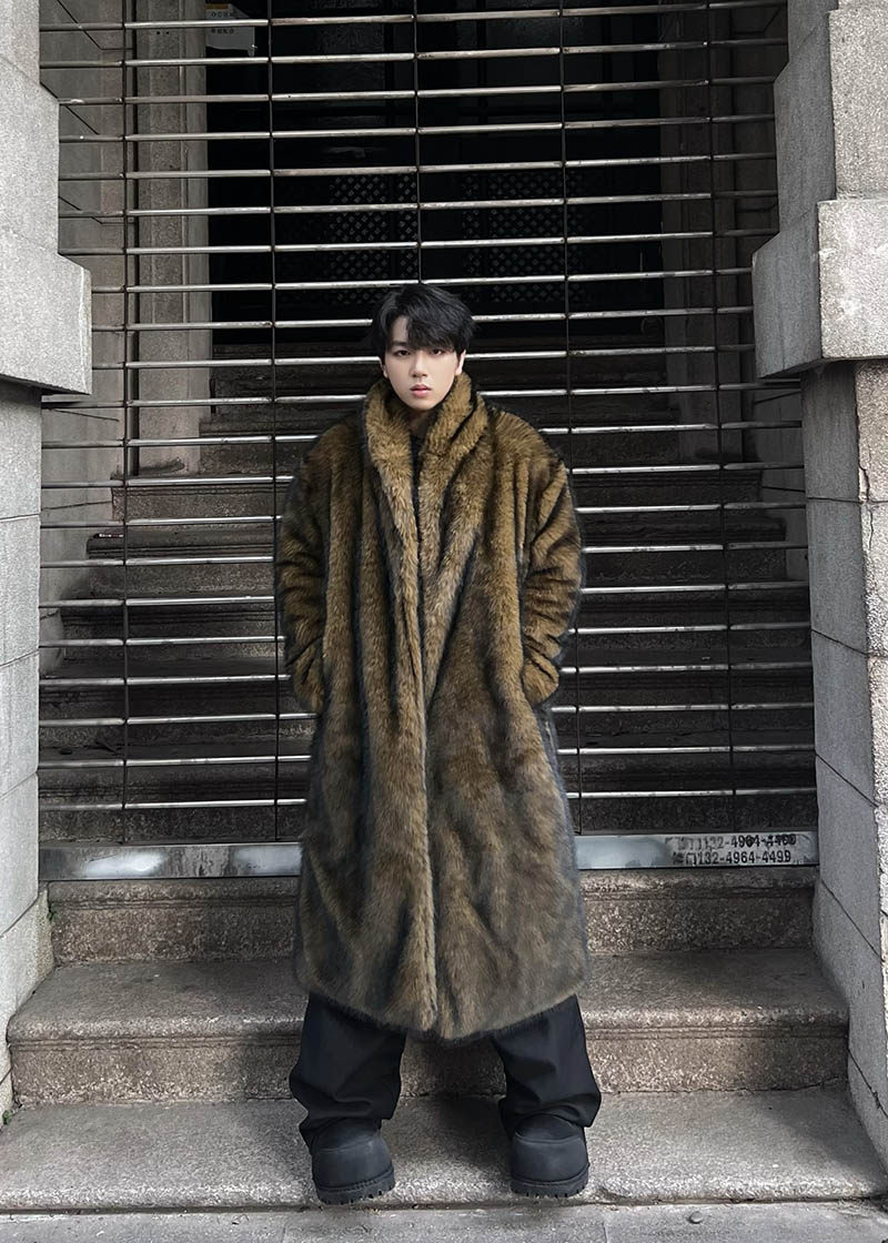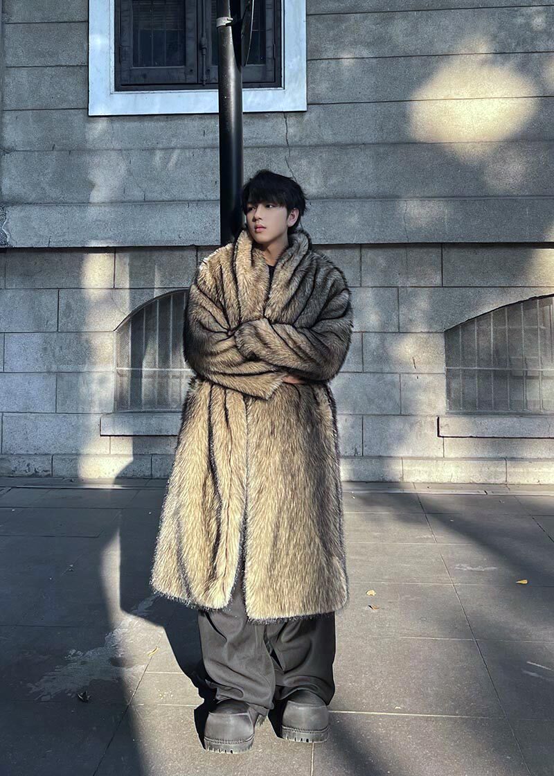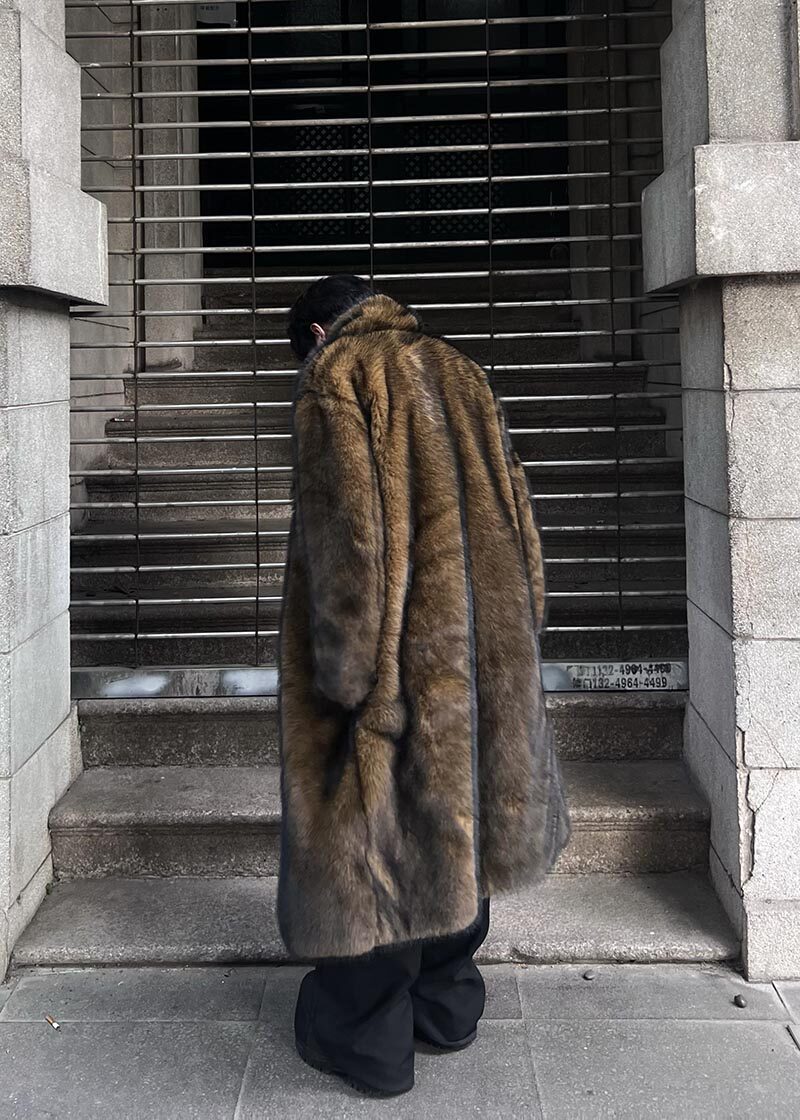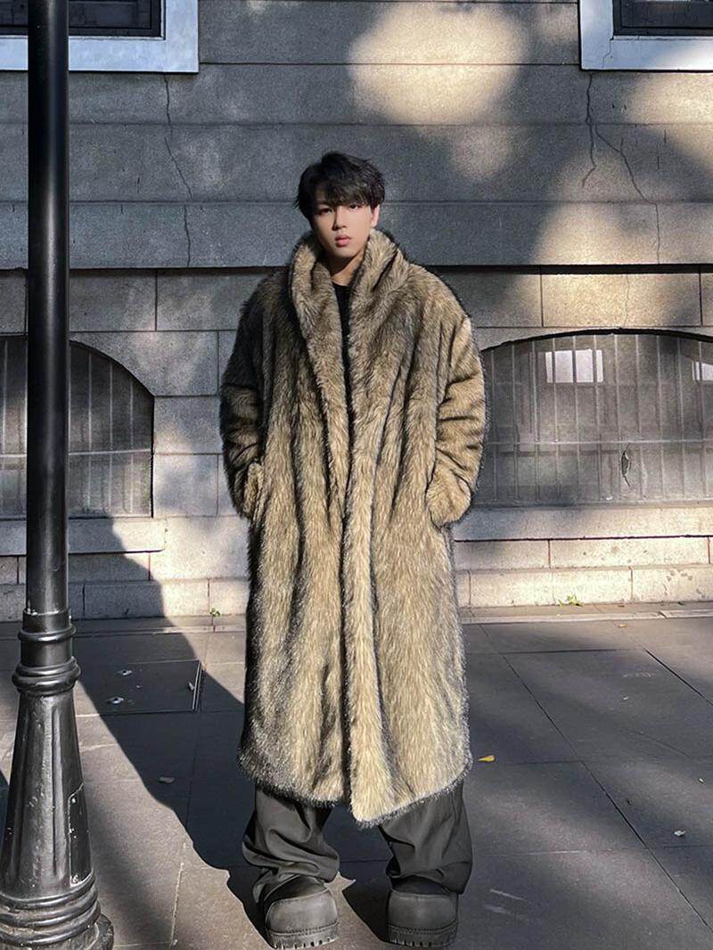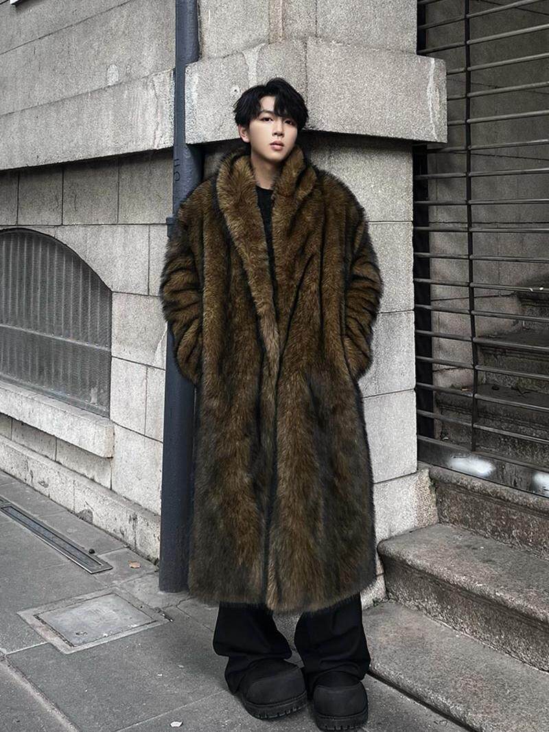 Winter New Fox Fur Fashionable Men's Fur Long Thickened Warm Coat Jacket Casual