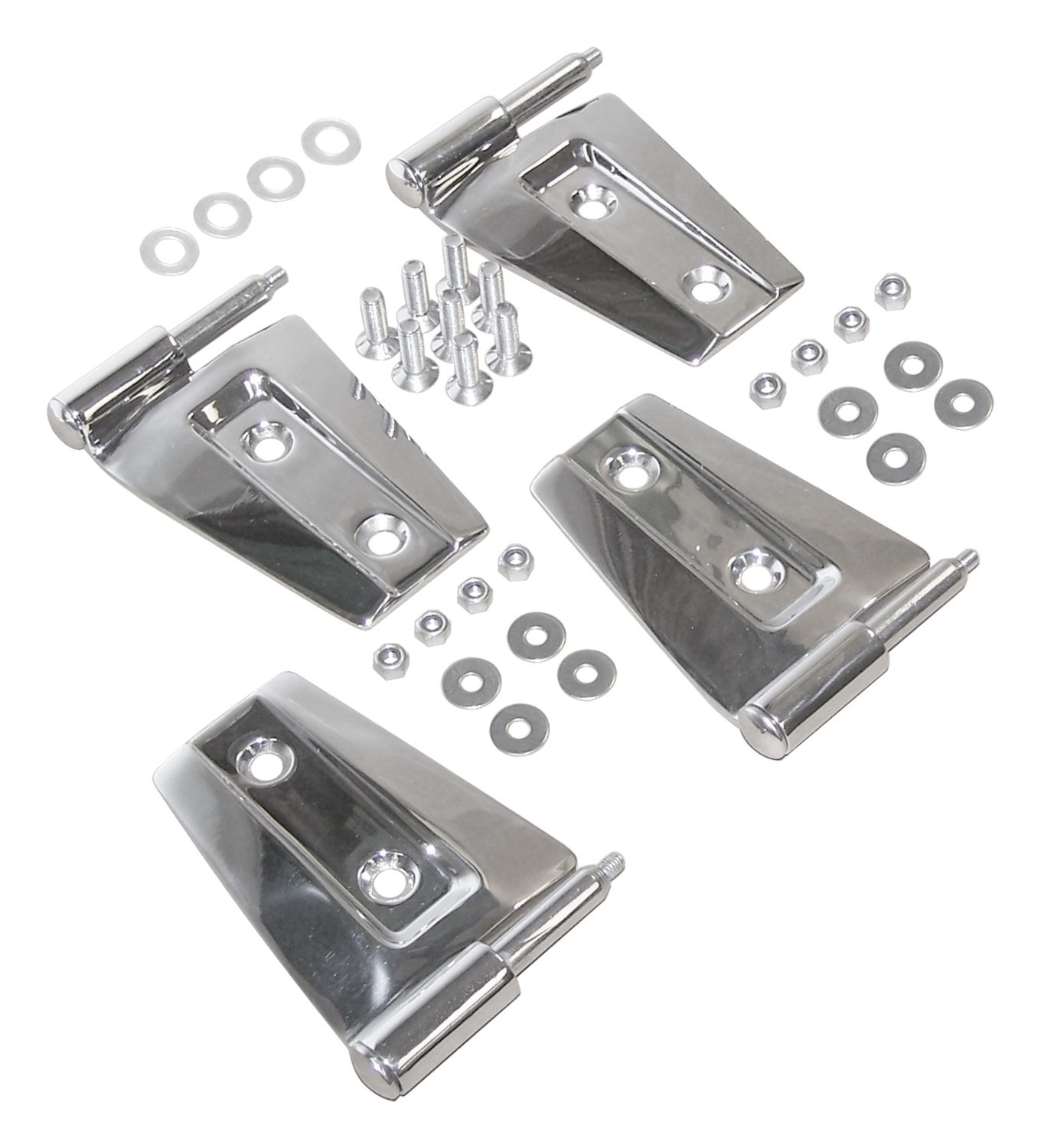 Stainless Steel Door Hinge Kit For 2-Door JK Wrangler RT Off-Roads Stainless Steel products offer optimal fit and finish while maintaining superior function. All brackets, hinges, and hardware are produced from corrosion resistant stainless steel. Each part is available in either a polished stainless steel or a rich black powder coat. Stainless Steel Construction Highly Polished Finish Includes Stainless Hardware Only Includes The Door Side Hinges (Not The Body Side)