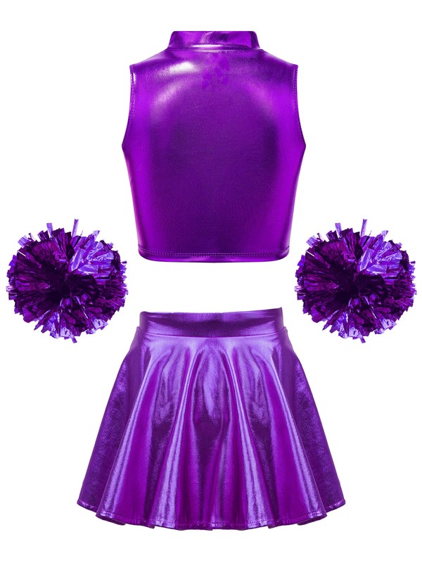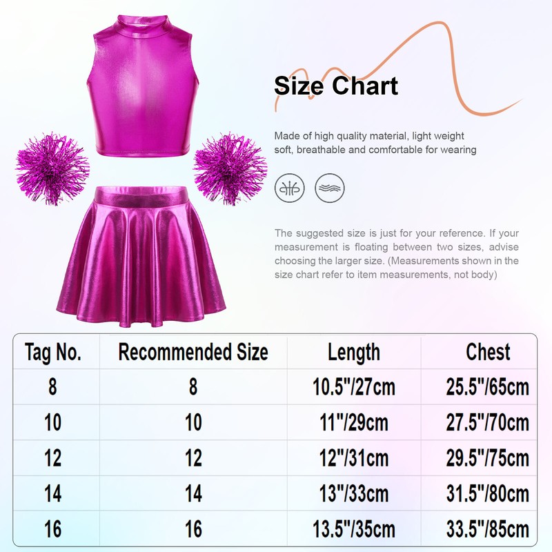 Match with metallic ruffled skirt, built-in shorts for modesty and maximum comfort, elastic waistband for a better fit.