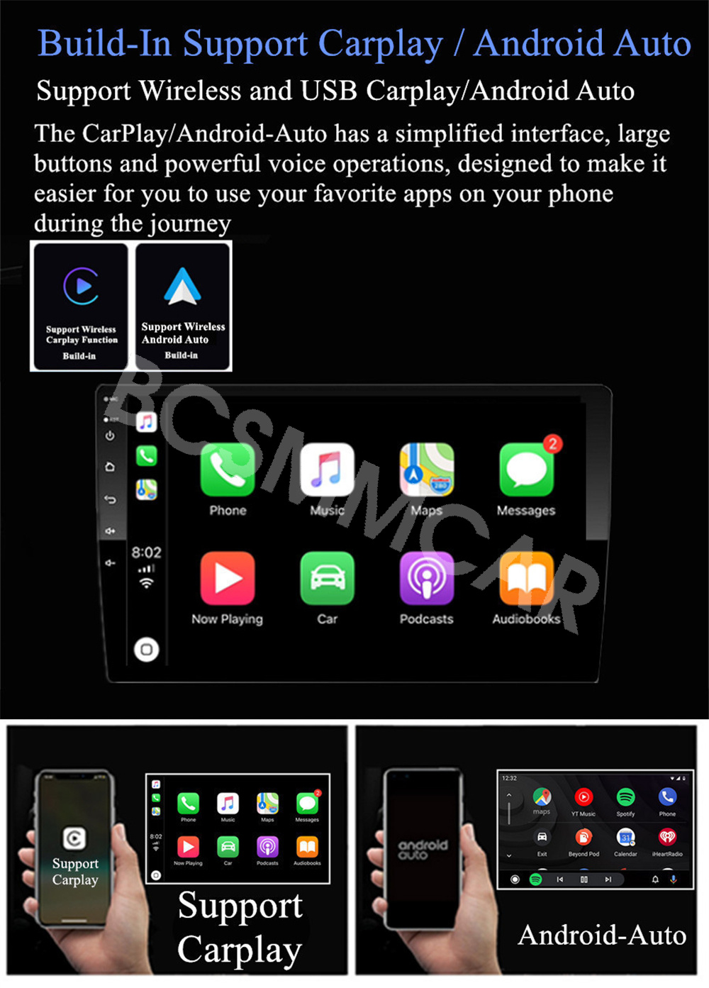 -Build-In Support WIFI Wireless & USB Wired Carplay And Android Auto.