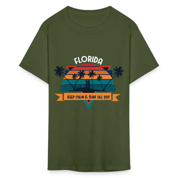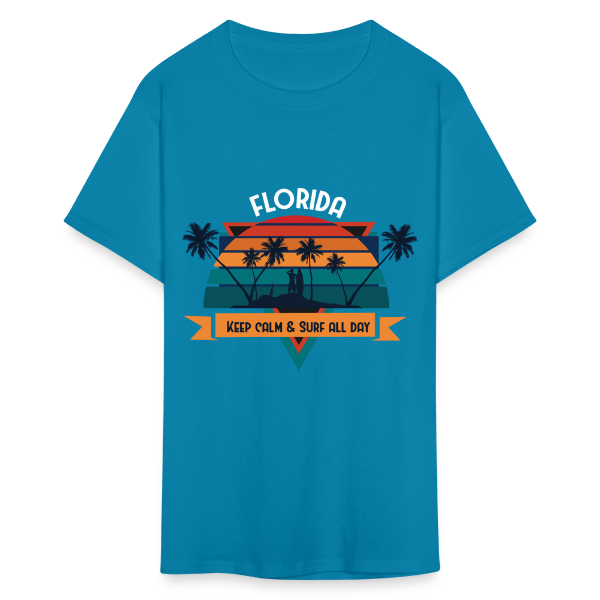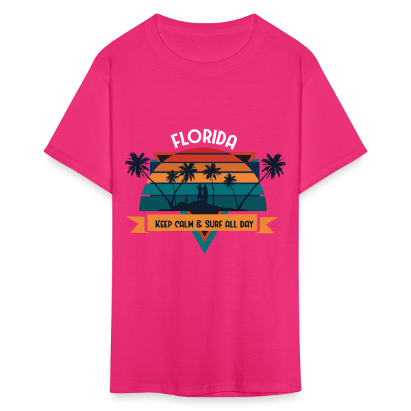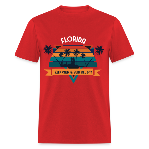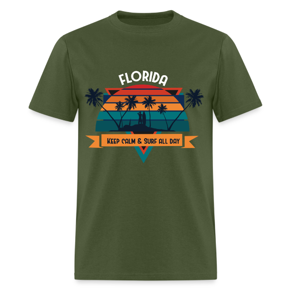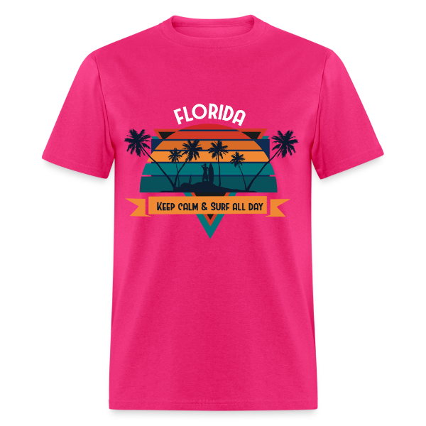 Florida Keep Calm and Surf All Day shirt Surfboard Surfing Sunset T-Shirt S-6XL