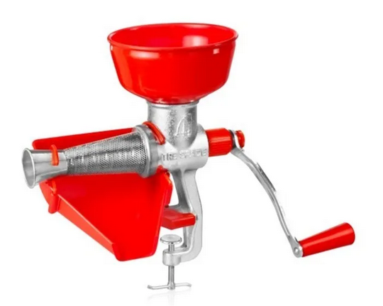 Spremipomodoro ad azionamento manuale con corpo in ghisa, particolarmente robusto ed economico; per piccole e medie produzioni domestiche di passata di pomodoro