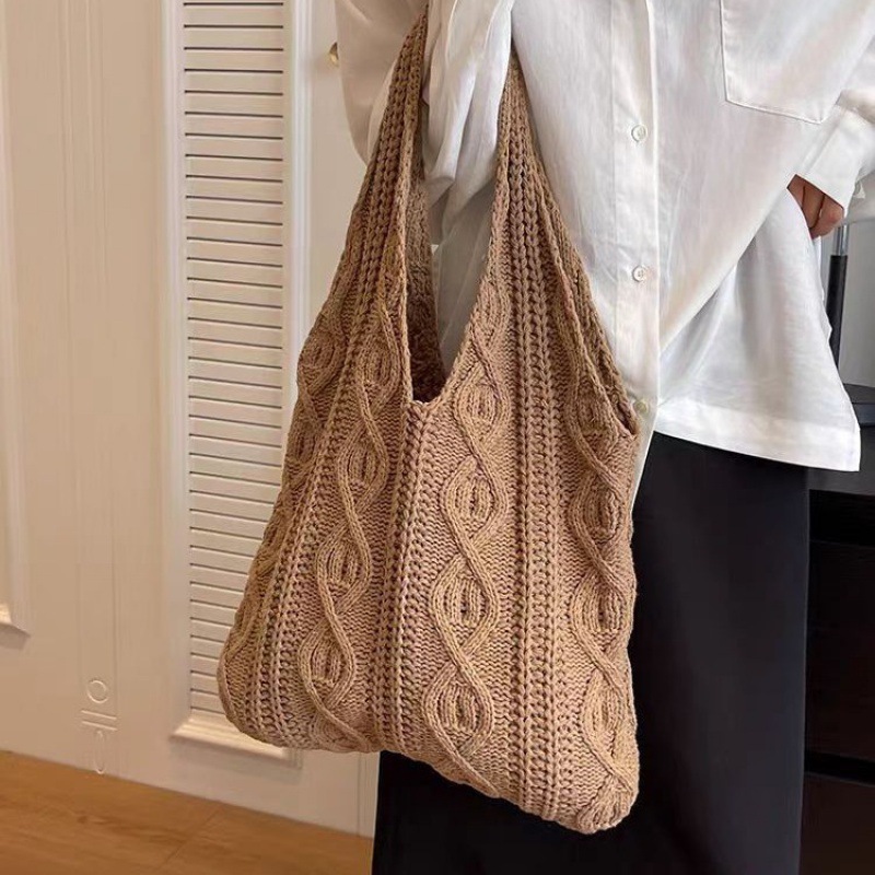 Knitted Twist Shoulder Bag, Large Capacity Vintage Woven Bag, Multi-color