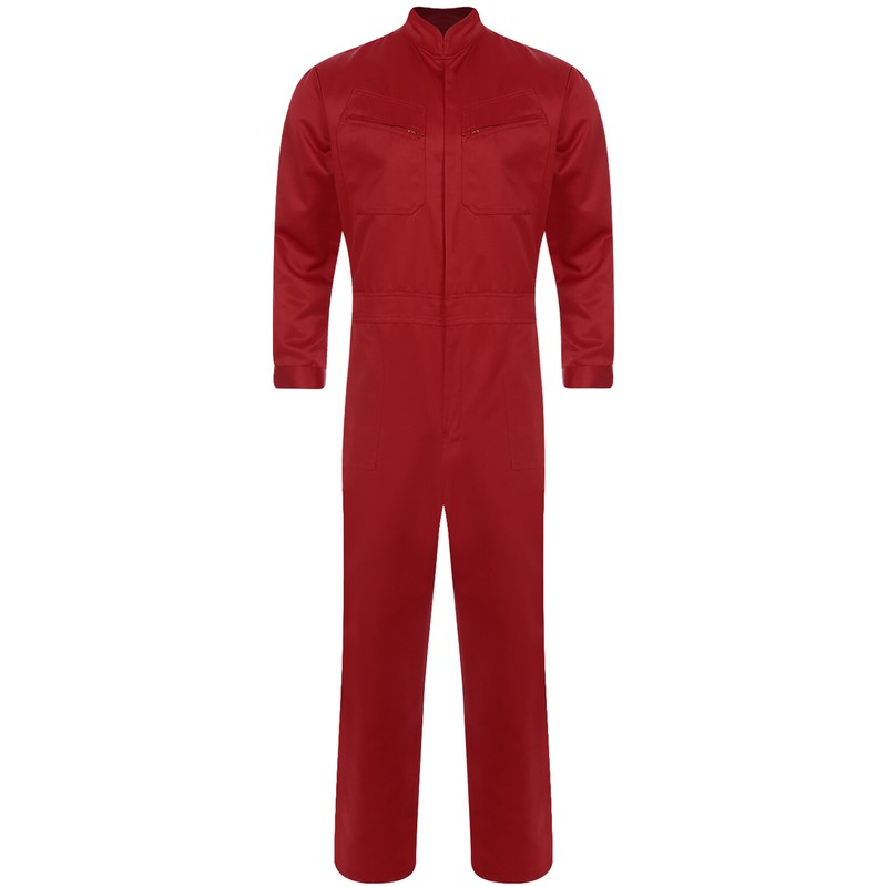 One-piece Jumpsuit is designed with stand collar, long sleeve, front zipper, multi-pocket, back elastic band and loose fitting.