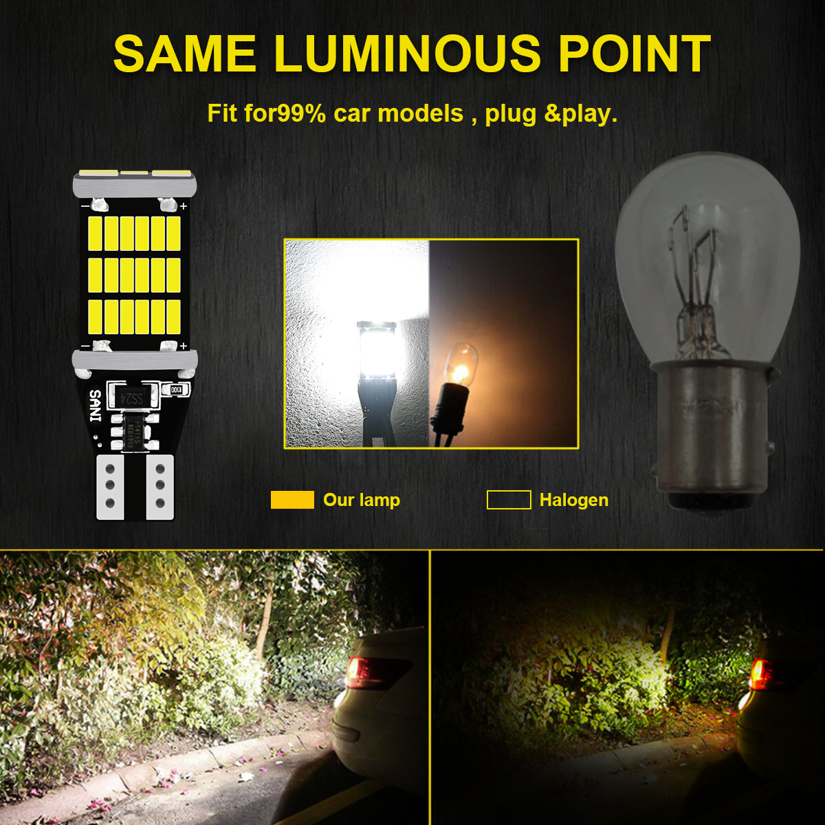 🔧 EASY INSTALLATION: Features a 1:1 bulb size match and almost identical light positioning to original halogen bulbs. The 360-degree beam angle ensures comprehensive illumination for a clearer and safer reversing experience.