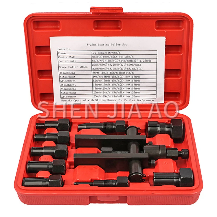 Name: Motorcycle bearing removal tool Specifications: 10-piece set Packing size: 218*150*45mm Weight: 1.26KG Function: Remove motorcycle bearings Maximum clamping range: 65mm