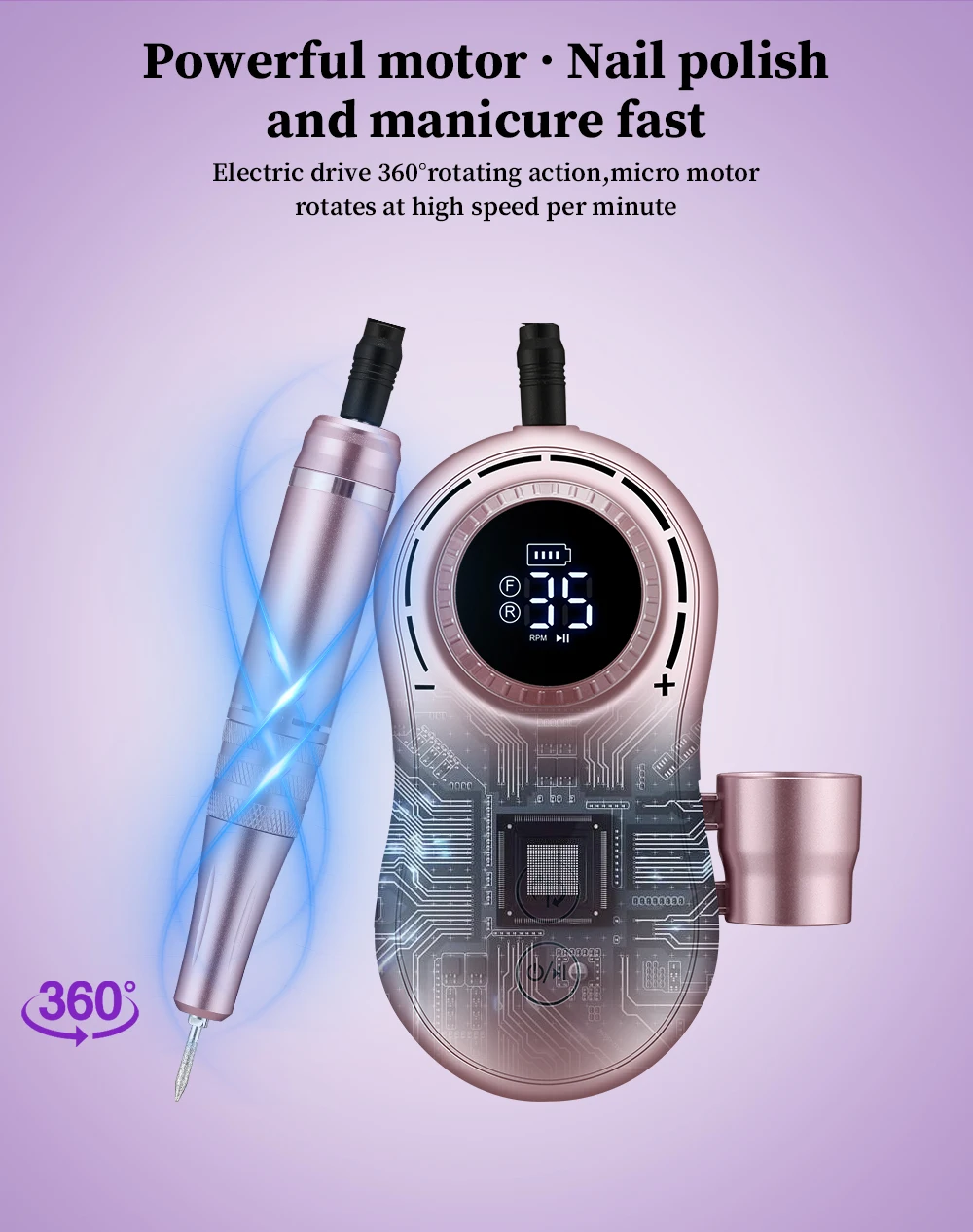 Easy to operate with F/R directions, this cordless nail drill is suitable for right-hand and left-hand.