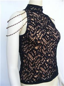 From ST. JOHN Evening by Marie Gray, this top is fantastic, with 3 beaded, strands, draped on each arm. They are detachable, so you can wear this 2 ways, for lots of great looks.