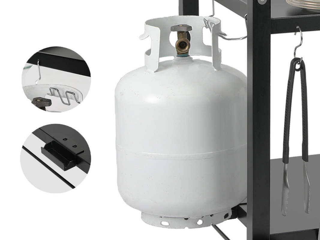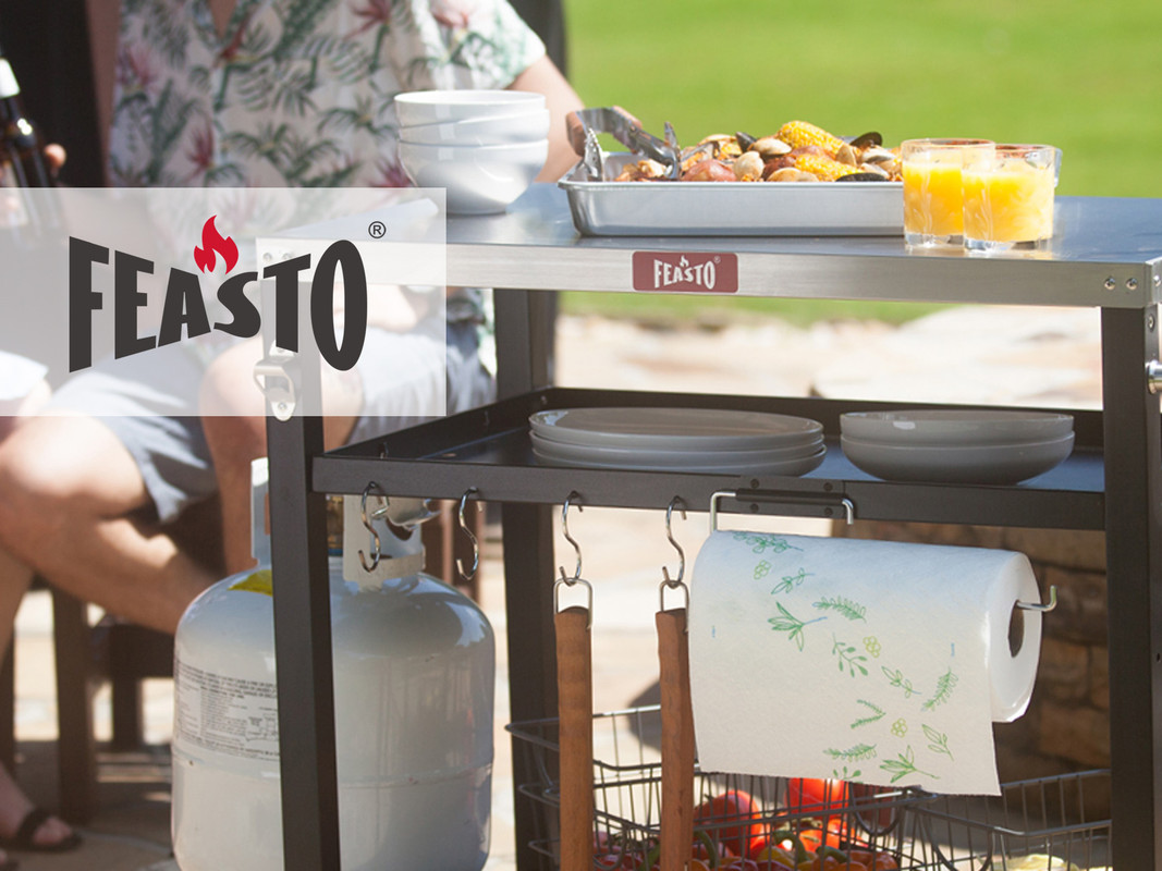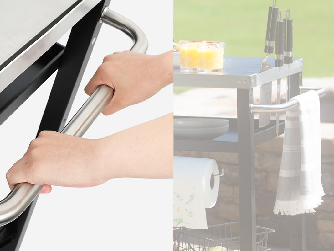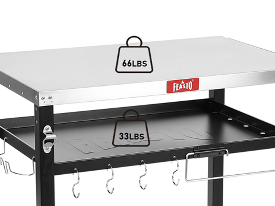 Feasto three-shelf stainless-steel cart table is designed as a good helper no matter for cooking or working. You can place it wherever in the kitchen, courtyard, work studio,etc. For outdoor use, we are aiming at grilling partner. Put on your potable griddle or pizza oven so that you can standing in your yard and cook the party meals. All tools you need for grilling can find a perfectly position on our cart table. While grilling with charcoal or gas grill, our cart table can be regard as the food prep area, nicely connected in the grill family.