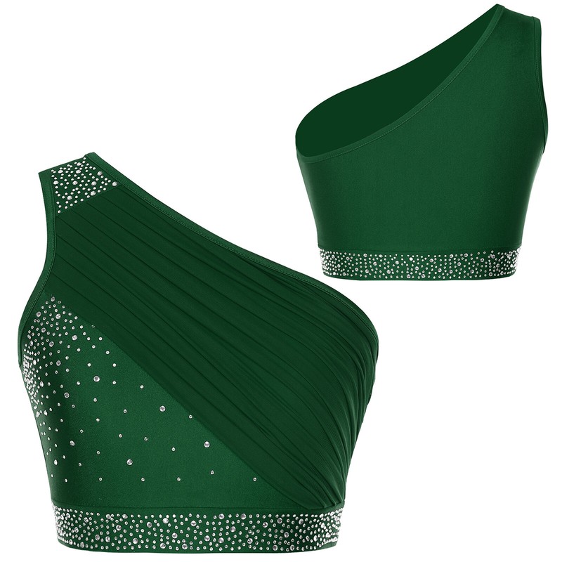 Women's Crop Top Rhinestones Vest Competition Tops Contemporary Blouse Sparkly