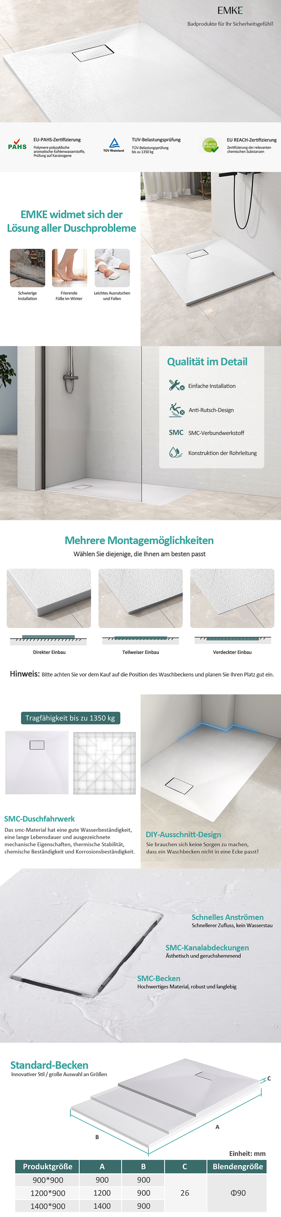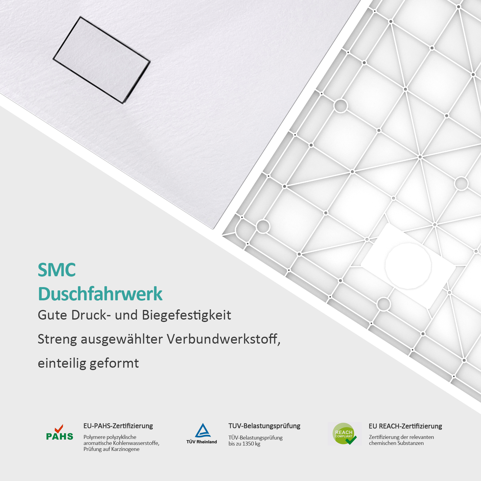 SMC Superflach Antirutsch Duschwanne Mit Ablaufgarnitur