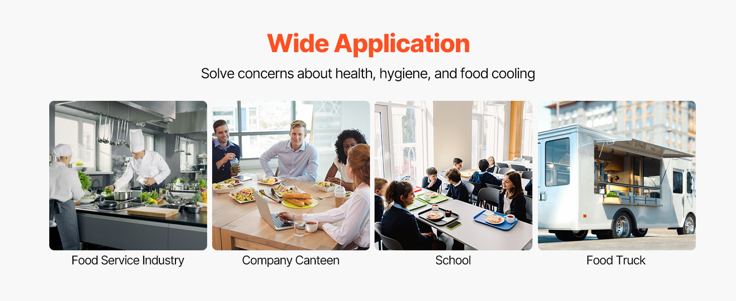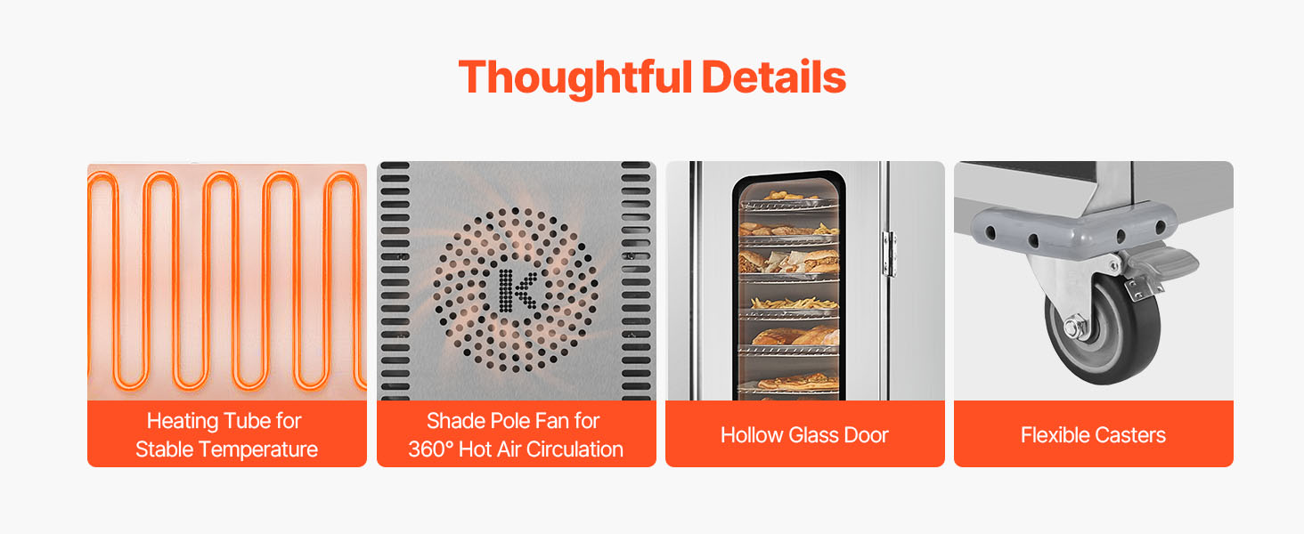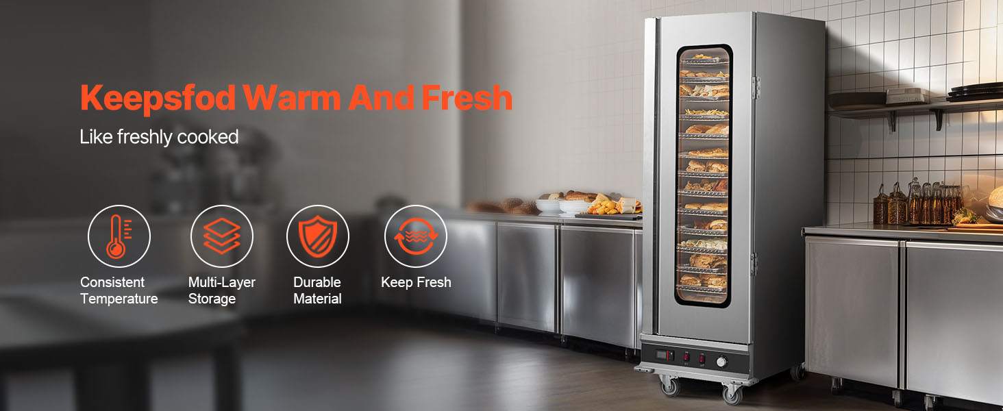 The commercial food warmer cabinet is widely used in commercial settings such as cafeterias, bakeries, coffee shops, buffet restaurants, self-service counters, banquets, fast food outlets, or convenience stores. Perfect for storing pizzas, egg tarts, fried chicken, burgers, and more.