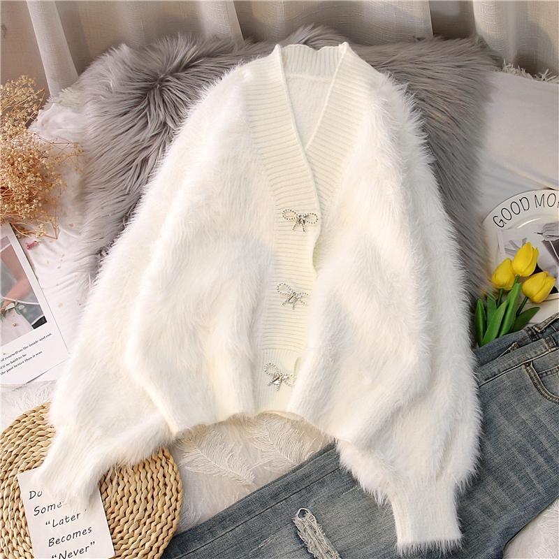 Pink Mink Fluffy Clothes Women's Coat Autumn and Winter Women's New Loose V-neck