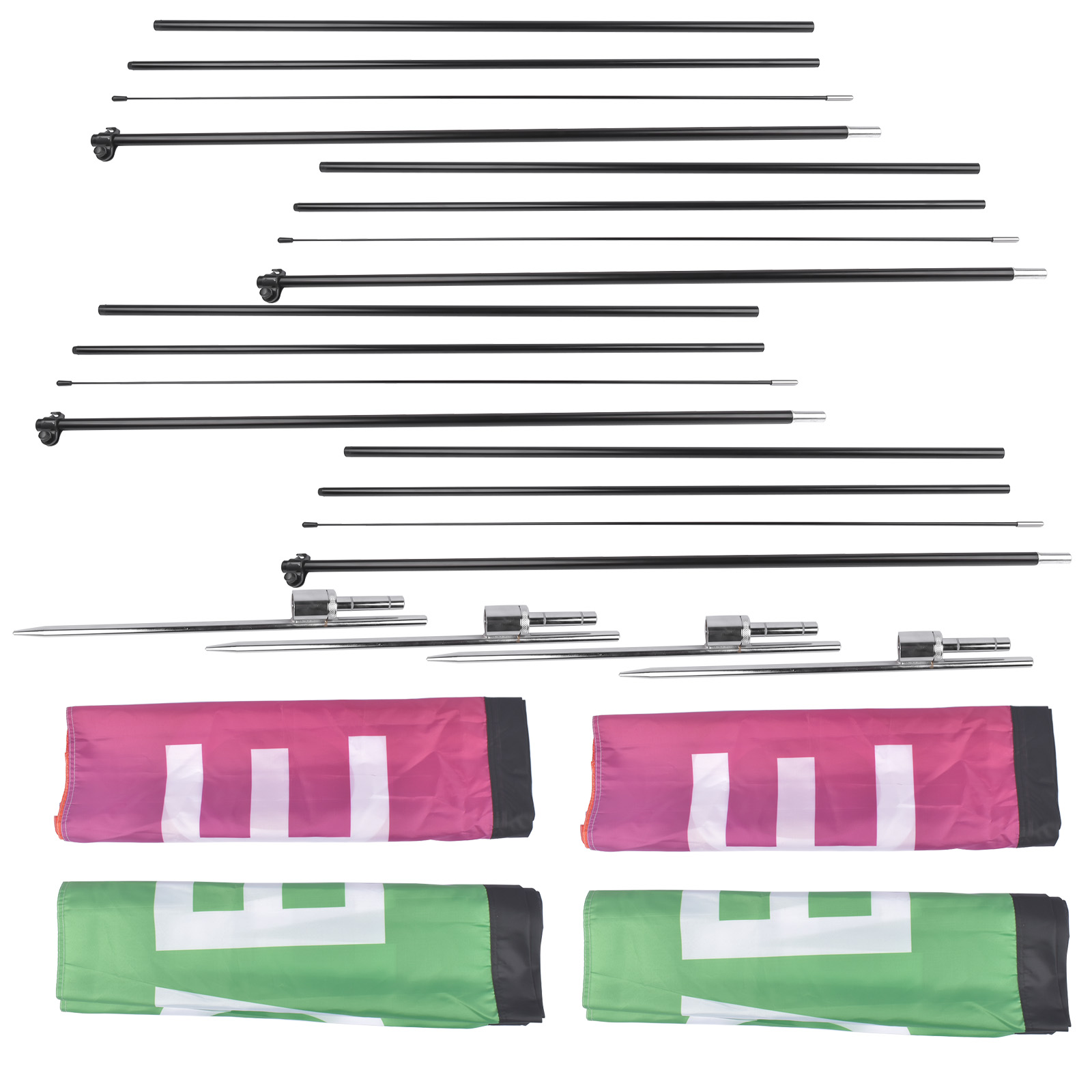 Package Included: 4x 1 set of flagpoles 4X Flag Face 4x Ground Spike |
