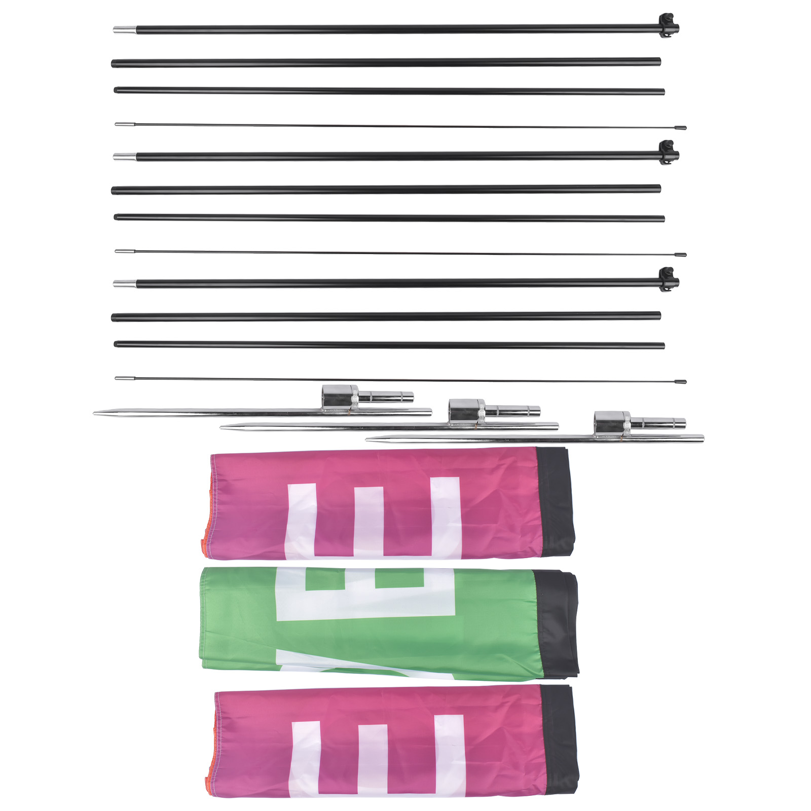 Package Included: 3x 1 set of flagpoles 3X Flag Face 3x Ground Spike |