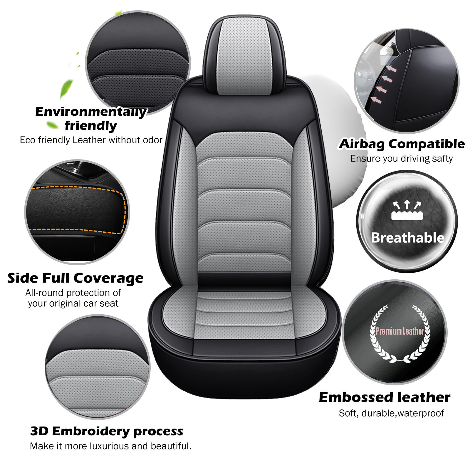 【Airbag Compatible】Special stitching design allows full seat function and control, includes folding, moving, sliding, armrests, airbags and so on. When the car encounters a huge impact, the airbag can wok normally.
