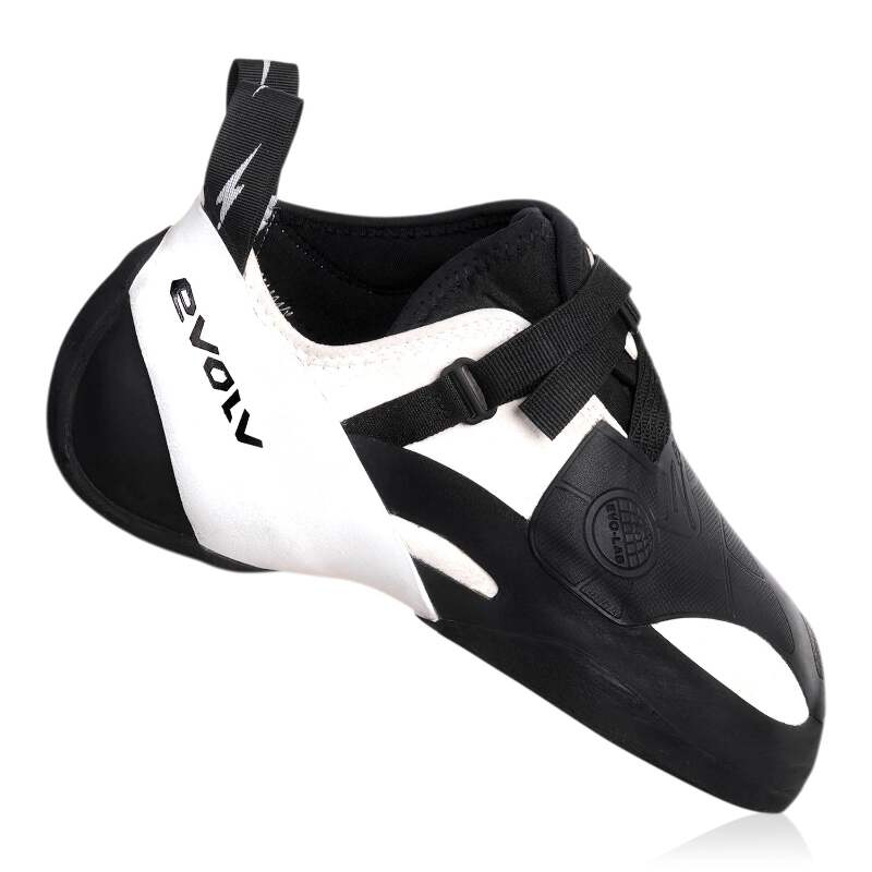 Climb in zero gravity with the Zenist Pro with EVOWRAP™ tension technology. The Zenist Pro is a more powerful evolution of Evolv’s minimalist training shoe, the Zenist. The Zenist Pro is purpose built to be the ultimate shoe for volumes and competition style climbing. The Zenist Pro combines Evolv’s EVOWRAP™ tension technology with its new Contour™ outsole, Power Locke Heel™, and super sticky TRAX SAS® rubber to create an extremely powerful soft shoe, providing unrivalled versatility when switching from powerful dynamic movements to delicate smears and foot swaps.
