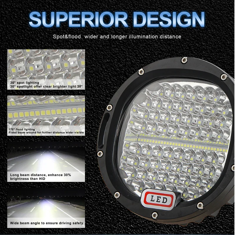 Super bright 7 inch round led off road work light spotlight high power front bar light dome light auxiliary lighting car lights