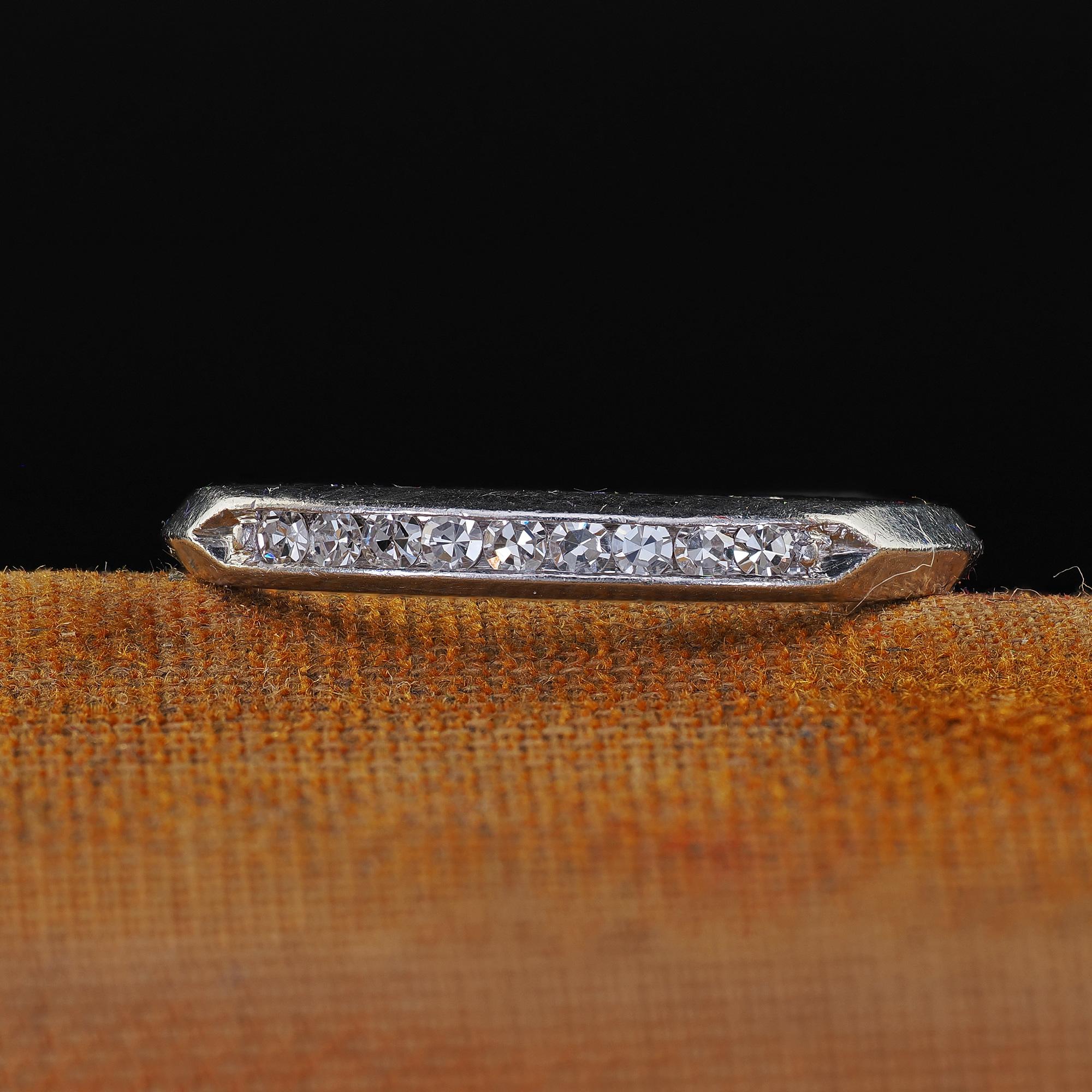 Beautiful Vintage Retro Platinum Single Cut Diamond Engraved Wedding Band - Size 6 1/4. This classic vintage retro single cut diamond wedding band is crafted in platinum. The ring features single cut diamonds set on top of a beautiful retro mounting. The inside of the band is engraved "Bill to Dorie 5-11-56". The ring is in good condition and sits low on the finger.