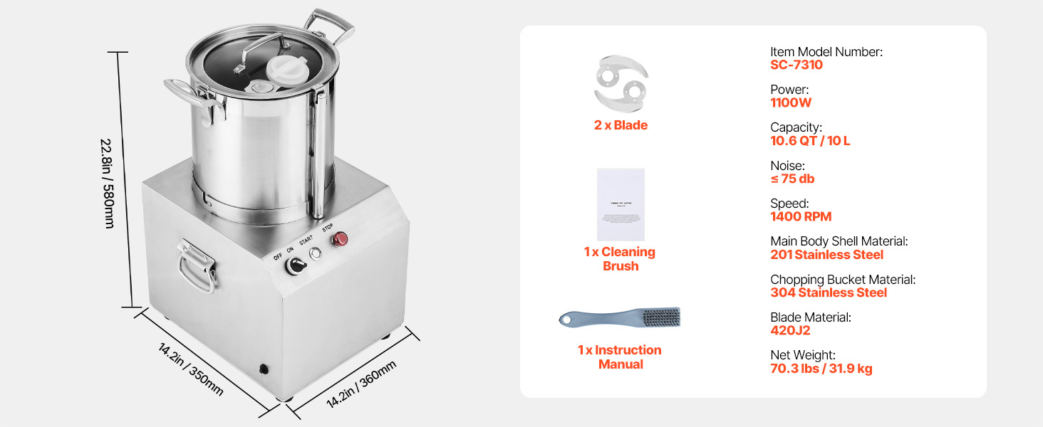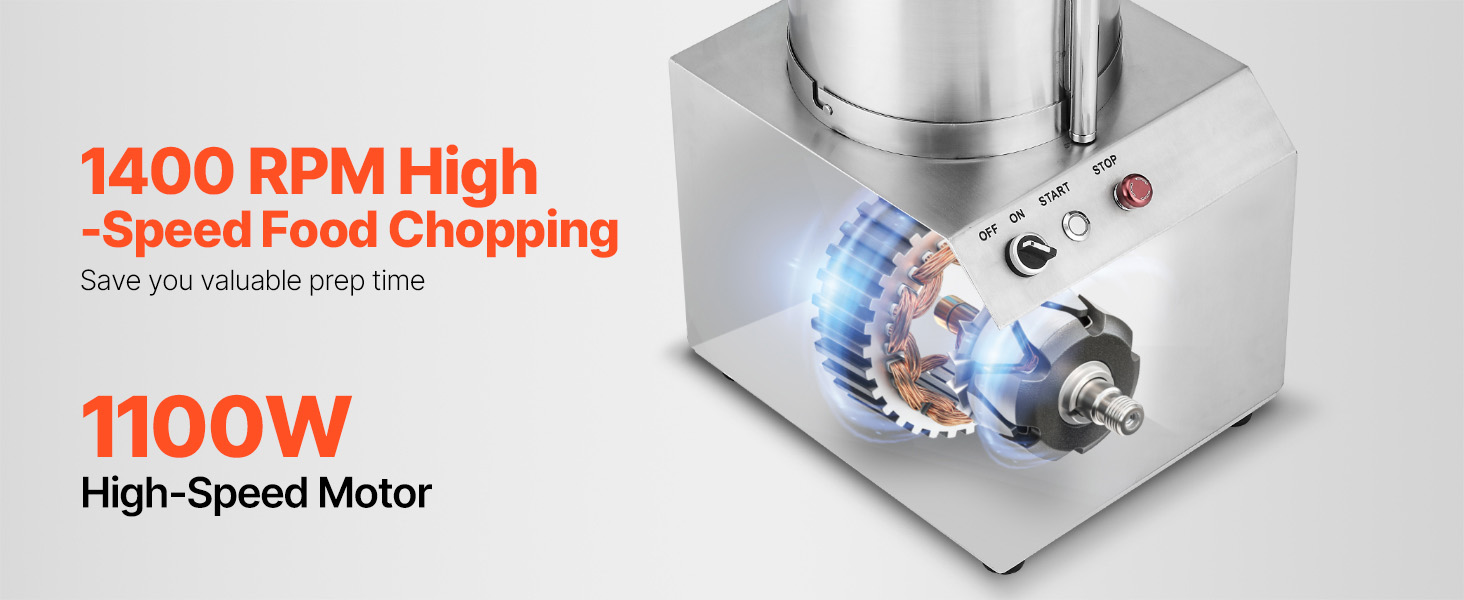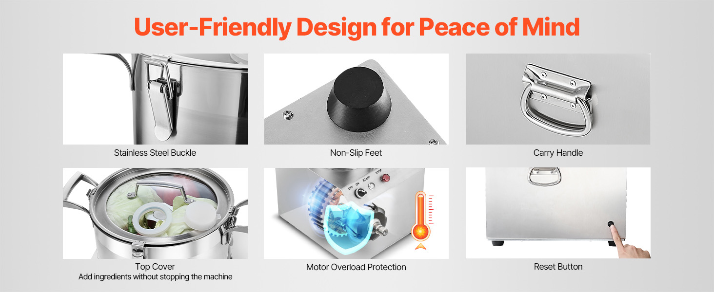 Our food processor features a 10.6QT / 10L super-sized capacity, 1100W powerful motor, and sharp S-shaped blades, allowing you to easily chop a variety of ingredients, from vegetables to fruits, in the bowl with just a single press. Make food preparation a breeze with our food processor chopper!