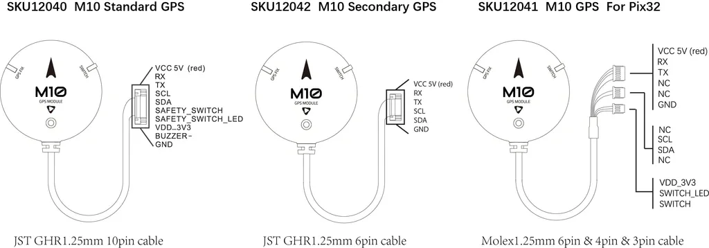 SKU12041 - Holybro M10 GPS for Pix32 & Pixhawk1/2.4.6/2.4.8 (Molex1.25mm 6pin & 4pin &3pin cable):