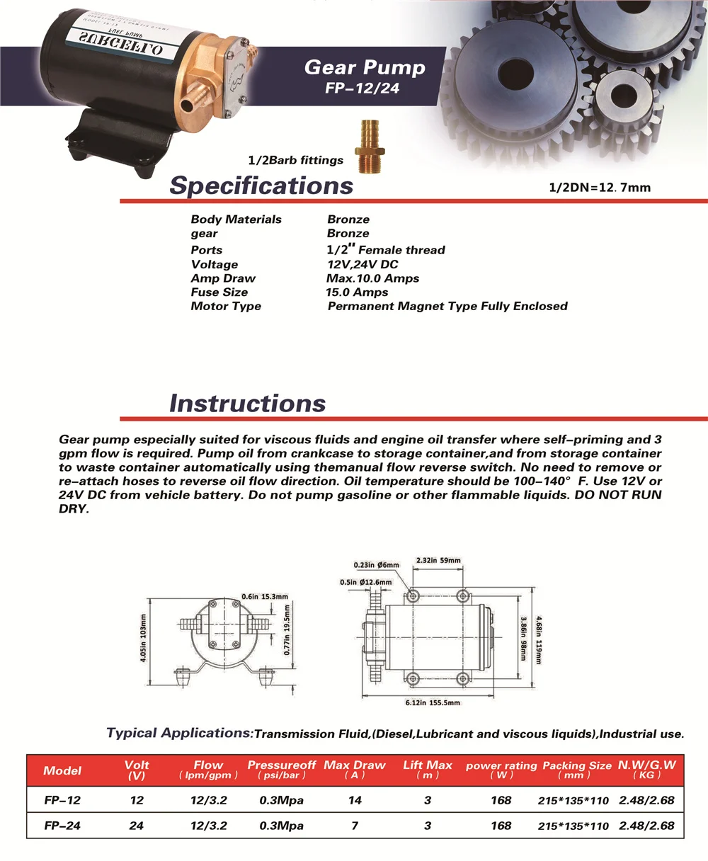 Uses: pumping diesel, pumping lubricants, pumping gear oil, pumping oil