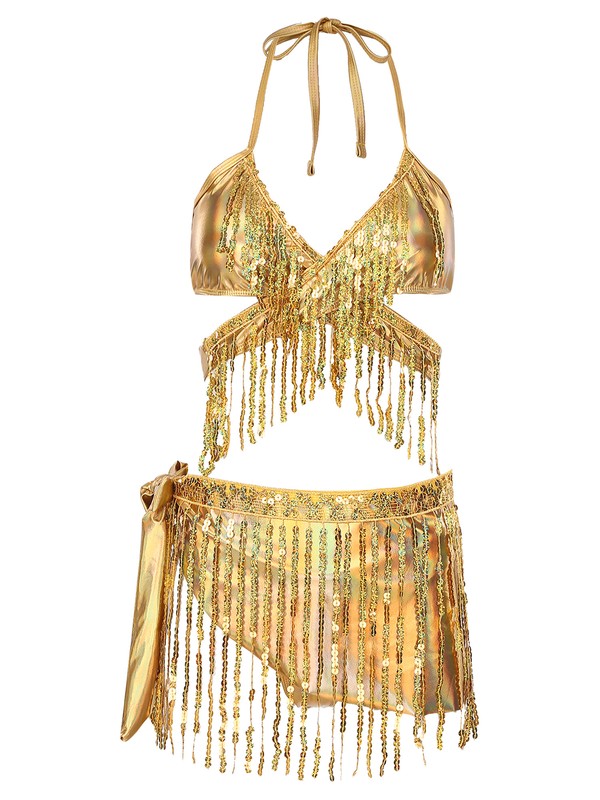 Fashion metallic shiny outfits with sequin tassels highlight your charming body curves and flatter your unique beauty.