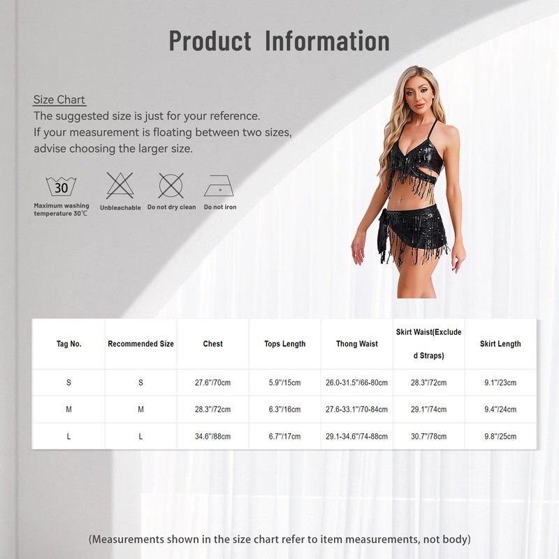 | Tag No. | Recommended Size | Chest | Tops Length | Thong Waist | Skirt Waist(Excluded Straps) | Skirt Length |