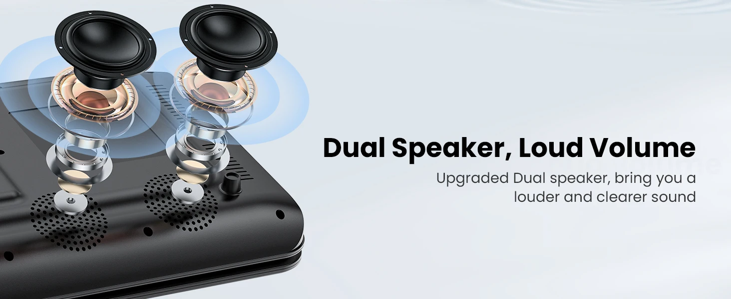 👨👩👧 Sonorous and Loud Volume ---- ieGeek portable DVD players equipped with two high-power speakers, which makes the volume louder and clearer. Not enough? There is a 3.5mm earphone jack on the right side of the player so that you can get a concentrated and clear sound.