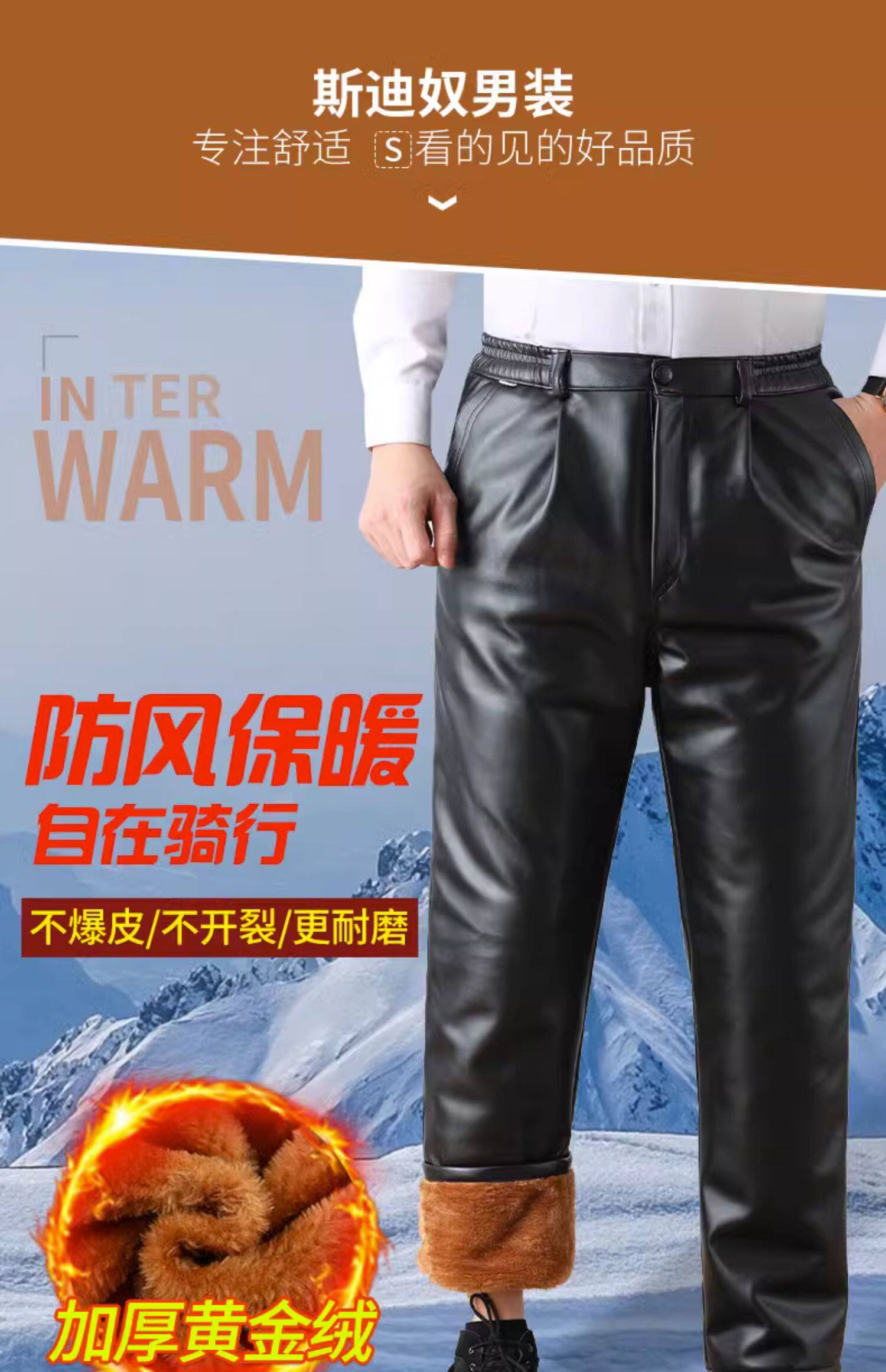 Mens Leather Trousers Velvet Thickening Riding Motorcycle Driving Windproof Warm