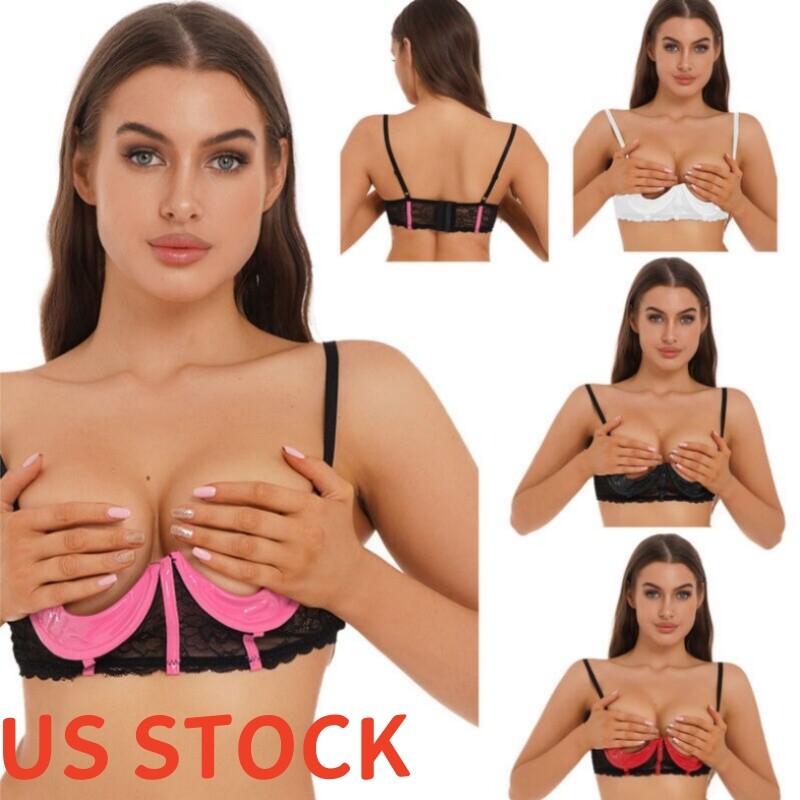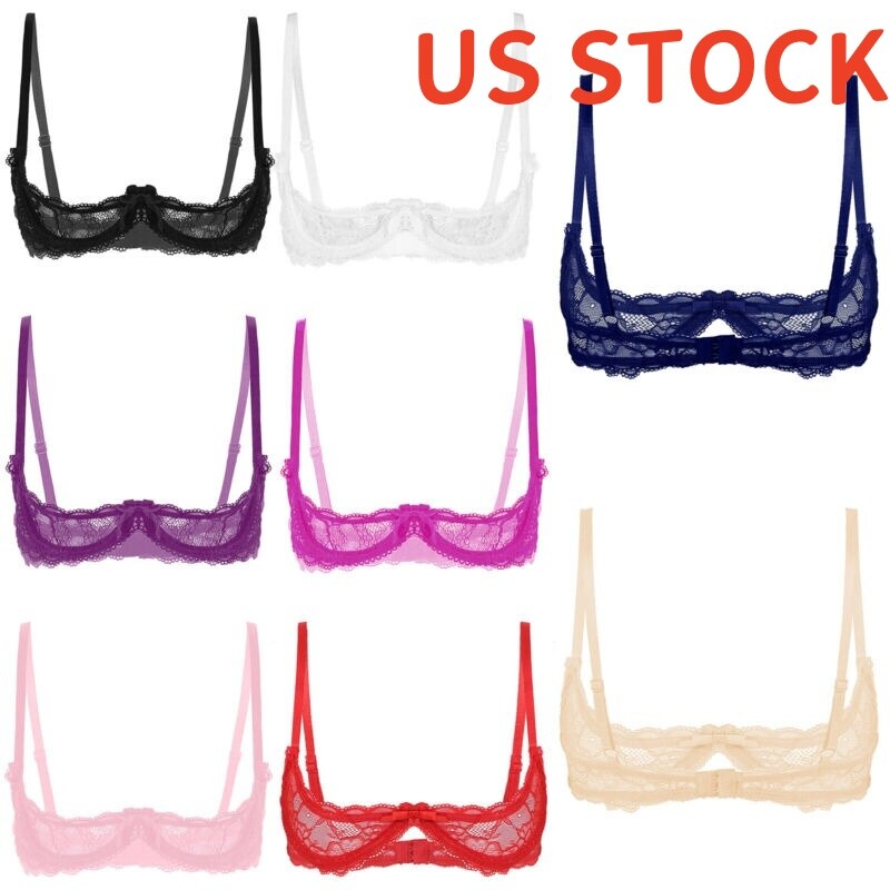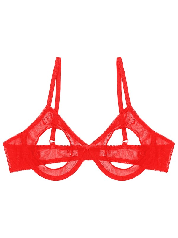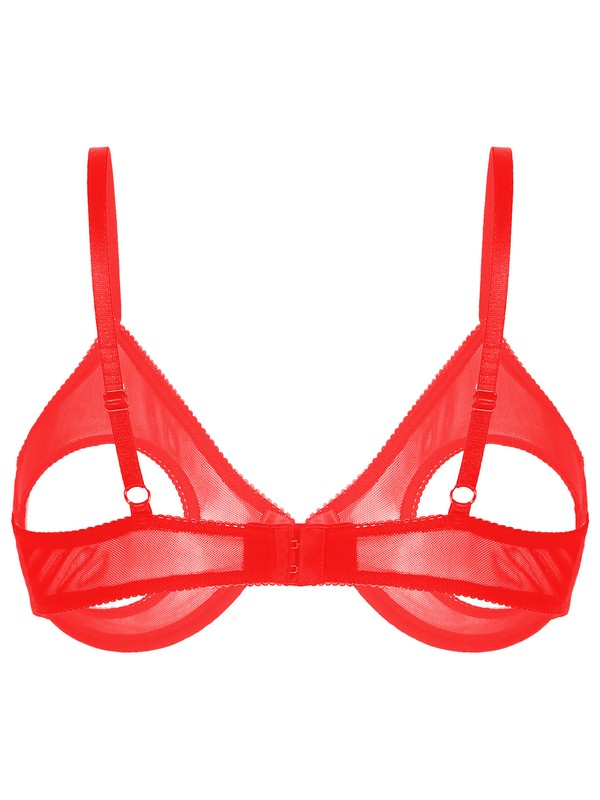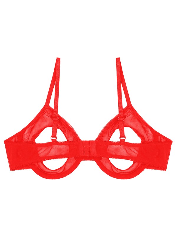 Womens Open Cups Underwired Bra Tops Adjustable Straps Sheer Mesh Brassiere Underwear.