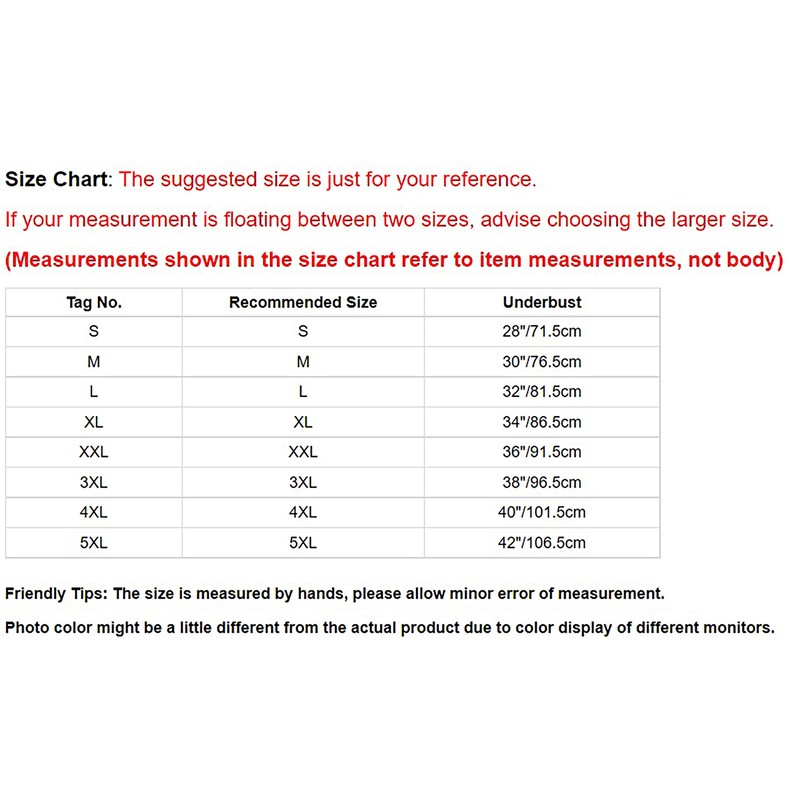 | Tag No. | Recommended Size | Underbust |