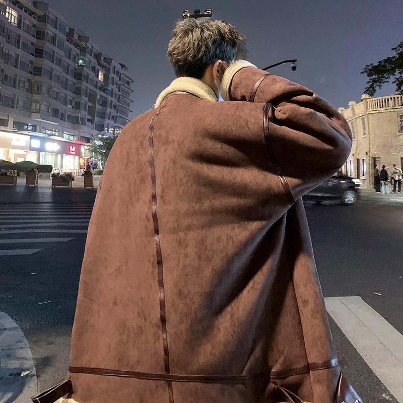 Suede Cotton Coats Men's Loose Lapel Thickened Fur One-piece Motorcycle Jacket