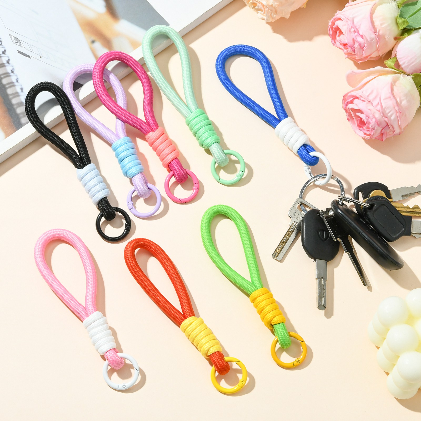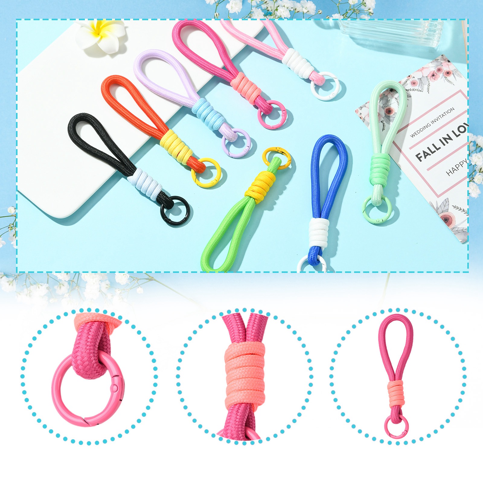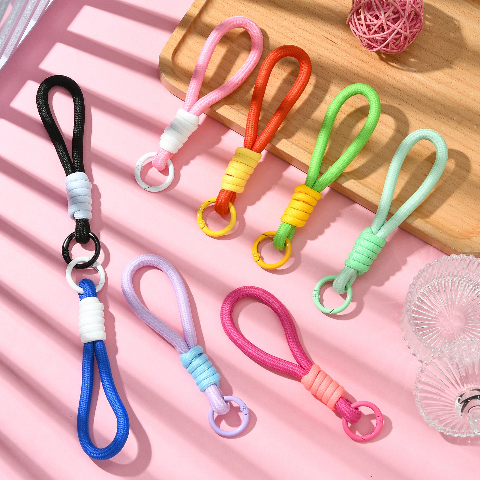 8x Braided Lanyard Keychain Phone Rope Strap Wrist Chain Decor with Spring Clips