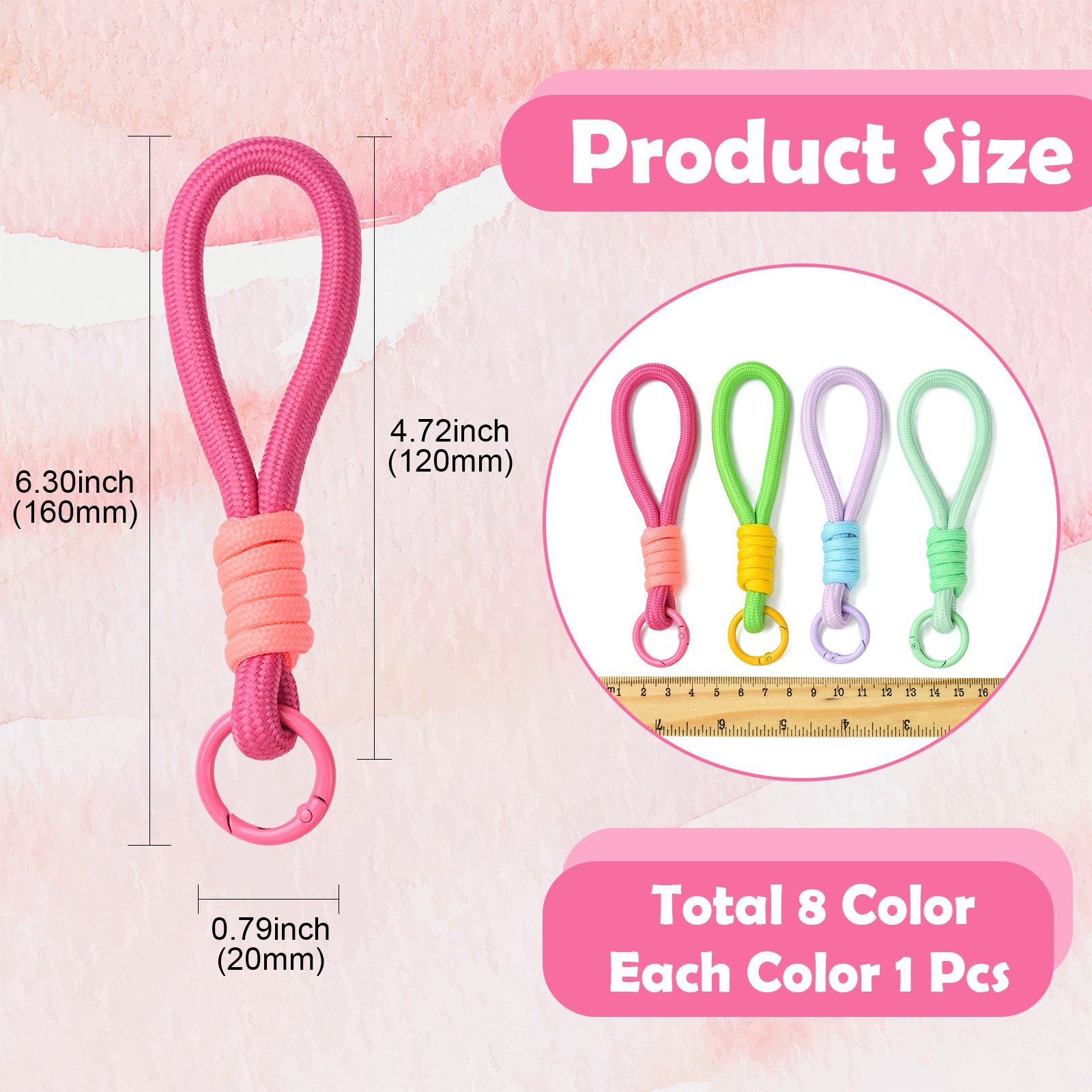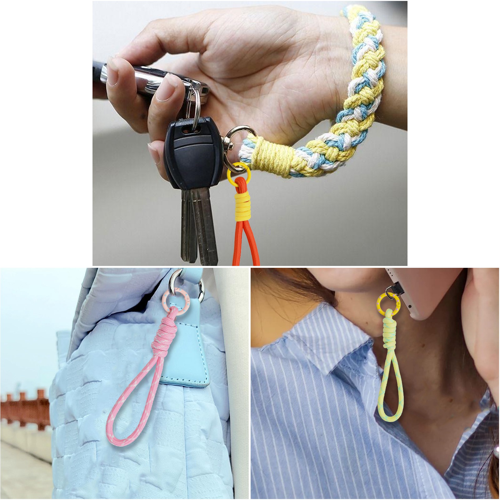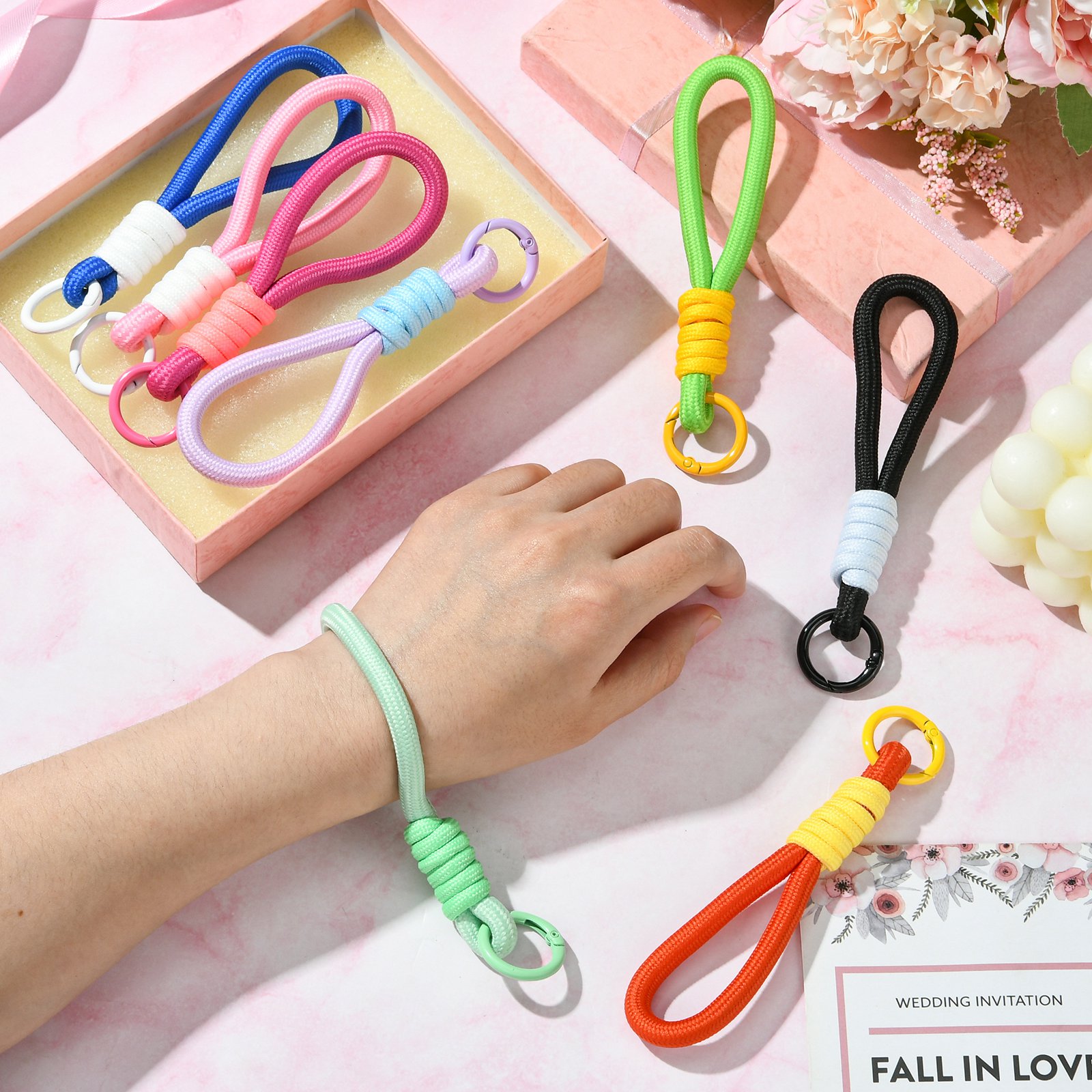 8x Braided Lanyard Keychain Phone Rope Strap Wrist Chain Decor with Spring Clips