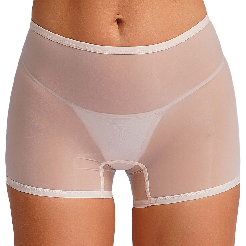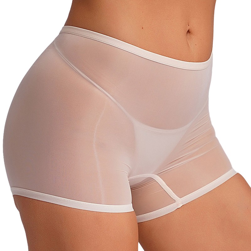 Stretchy and low waistline underwear, glossy appearance, see-through style.