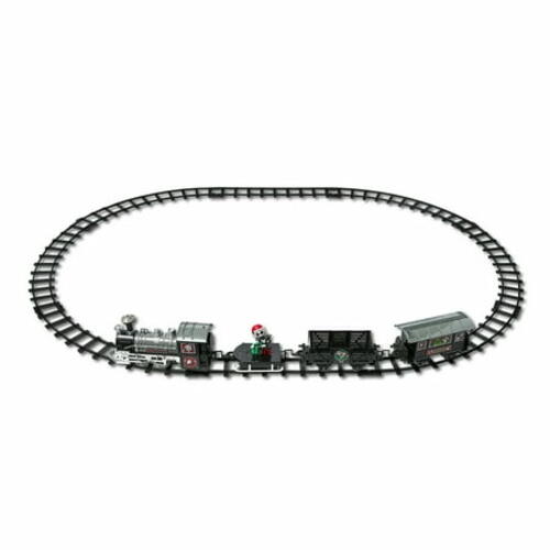 Disney The Nightmare Before Christmas Holiday Express Train Set is a ready to play 12 piece train set. It features light sound and a 3-D Jack Skellington character in the train car. There is a battery powered locomotive train car and caboose in set.The train set comes with 9 feet of train track. Perfect for under the tree or holiday decorating.