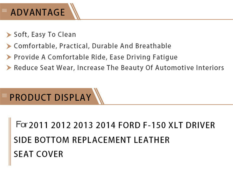 Fitment: For 2011 2012 2013 2014 for Ford F150 XLT Driver Side Bottom Replacement Leather seat cover