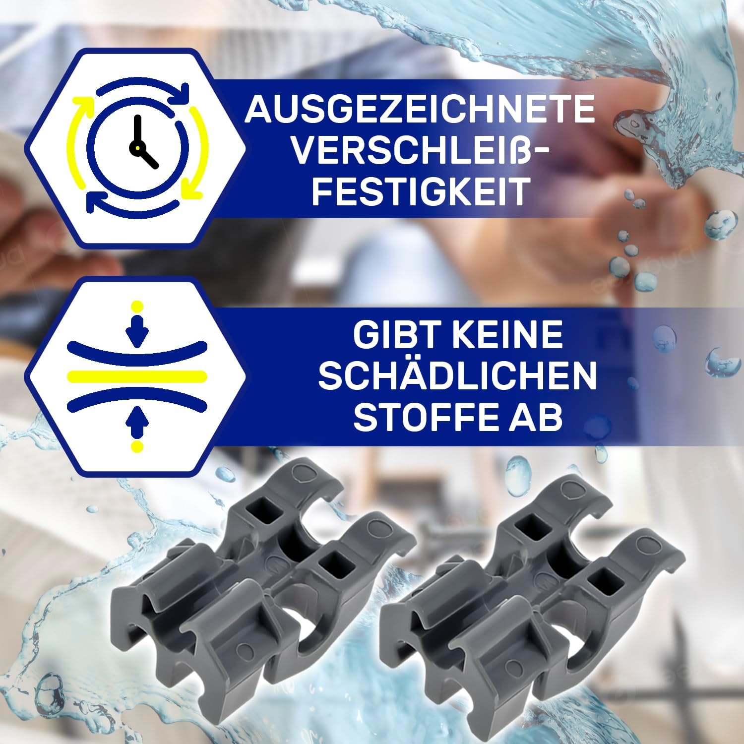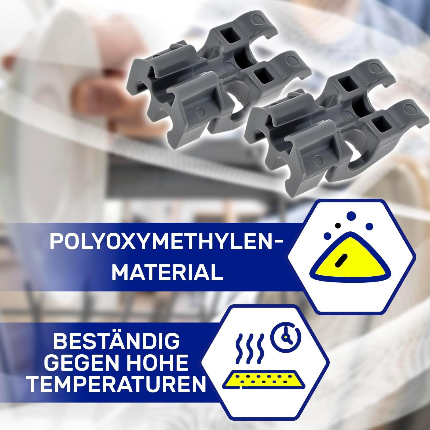 Das Lager ist aus dem Material POM2 gefertigt, das bedeutet, dass spülmaschine zubehör aus dem Material Polyxymethylen besteht, das hoch temperaturbeständig ist, eine hervorragende Verschleißfestigkeit aufweist und keine schädlichen Stoffe abgibt.
