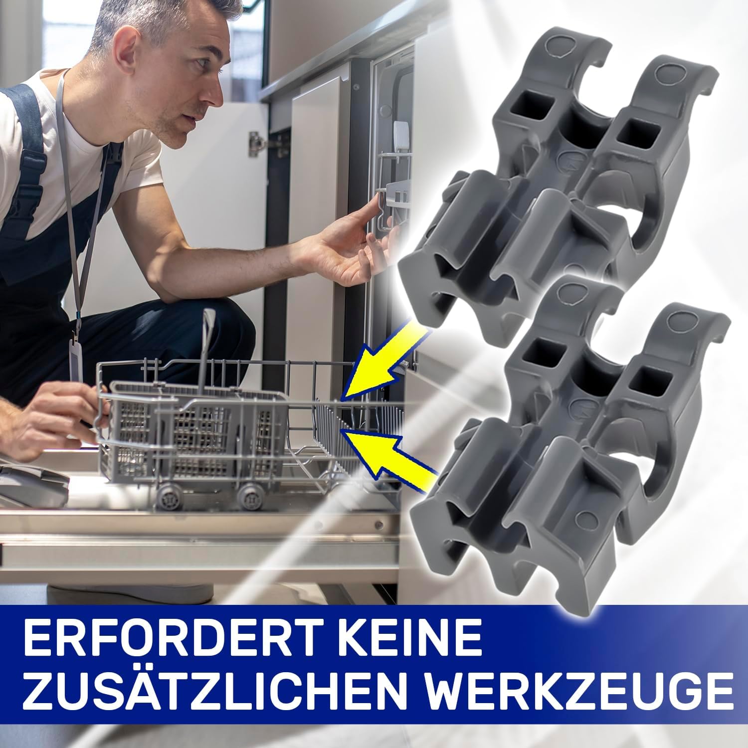 Die Installation der geschirrspüler zubehör ist sehr einfach, leicht und erfordert keine zusätzlichen Werkzeuge oder Kenntnisse.