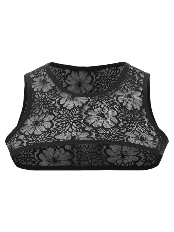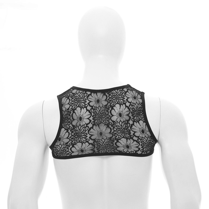 A lace vest for men, sleeveless, wide shoulder straps, crop top styled, all over lace makes you more attractive.