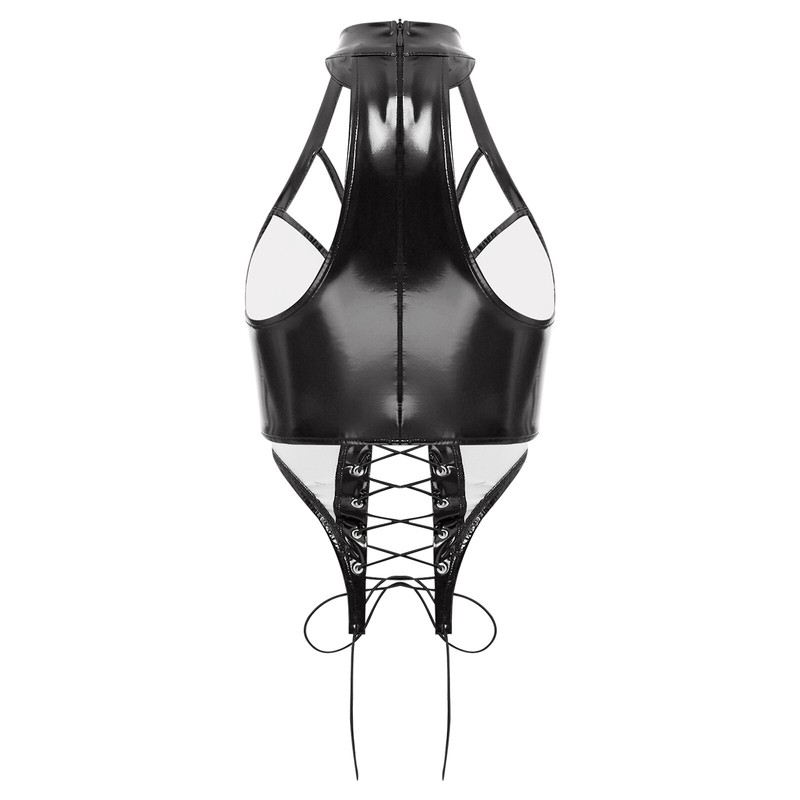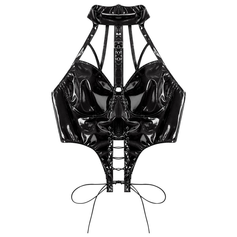 Women Vest Wetlook Tops Shiny Shirts Halter Neck Crop Top Club Tank Party