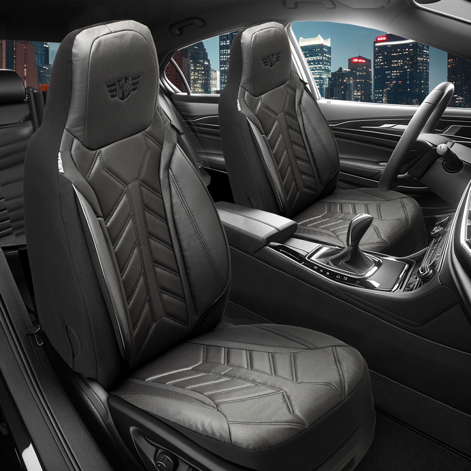 Pilot Autositzbezüge - Farbe: Schwarz-Anthrazit | Mit geprüfter Airbag-Naht und ABE-Zulassung