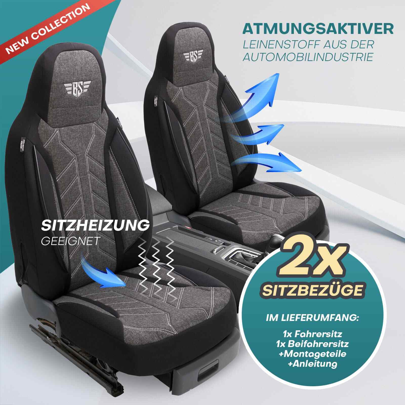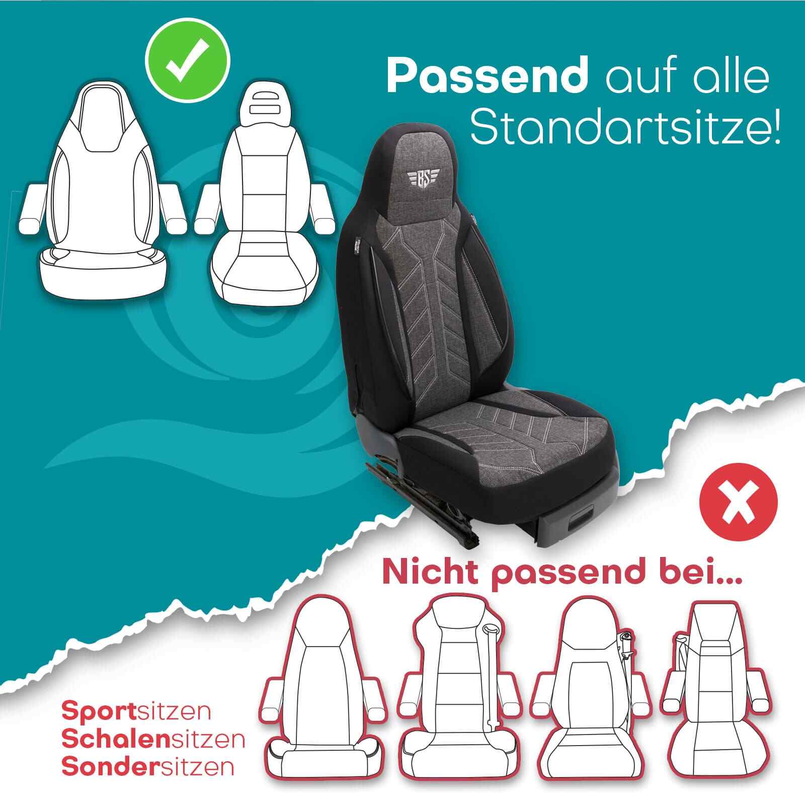 - Set enthält 2 Sitzbezüge für Fahrer- und Beifahrersitze.