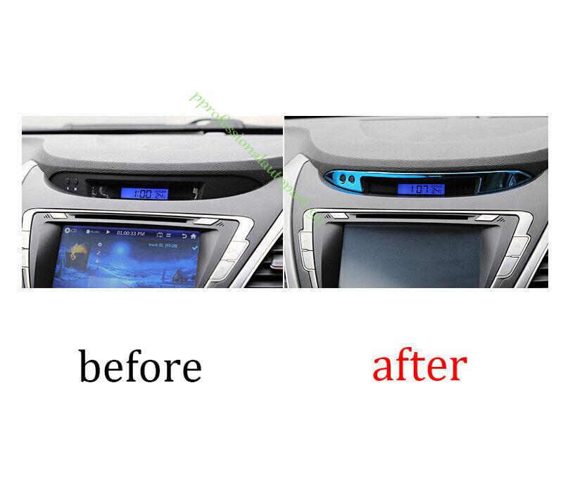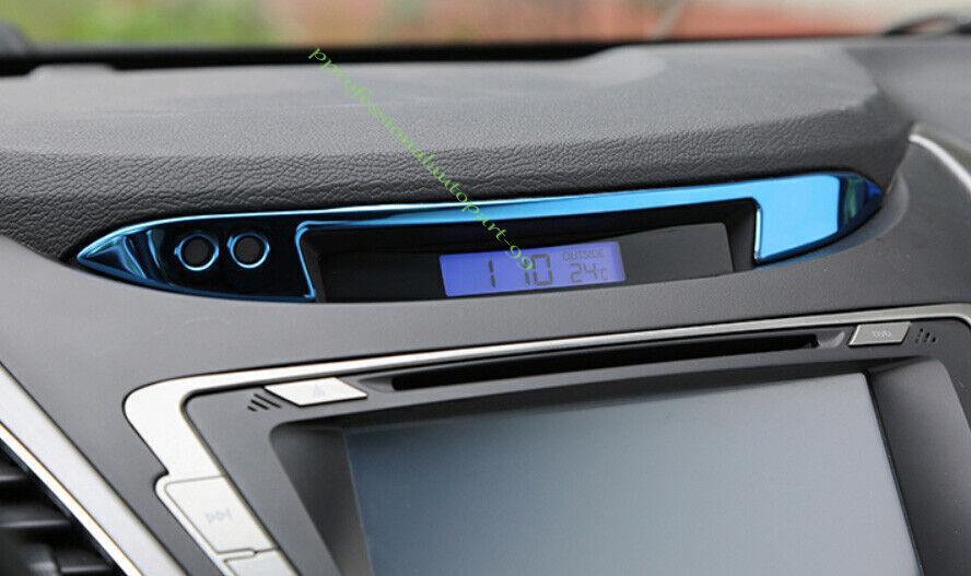 For Hyundai Elantra 2011-2016 Blue Steel Center Console Dashboard Clock Strip