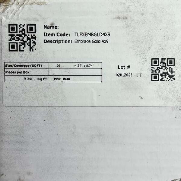 The Home Decor Embrace Wall Tile combines elegance and sophistication with a stunning gold finish that adds a touch of luxury to any space. Each tile measures 4" x 9" and comes in a set of 20 tiles, covering a total of 5.30 square feet. Ideal for use in kitchens, bathrooms, or accent walls, these tiles feature a versatile design that works well with a variety of décor styles. Their sleek, metallic gold appearance reflects light beautifully, enhancing the ambiance of any room. Whether you're remodeling or starting a new project, the Embrace Wall Tile offers both visual appeal and durability, creating a lasting impression in your home or office.