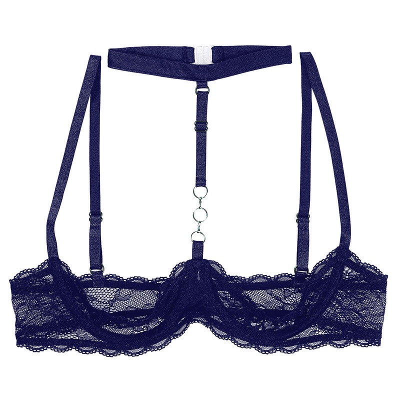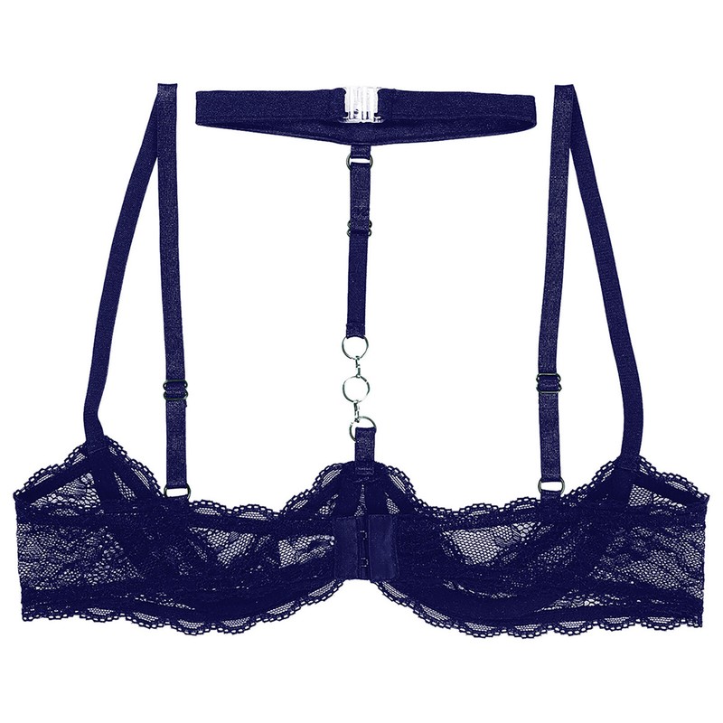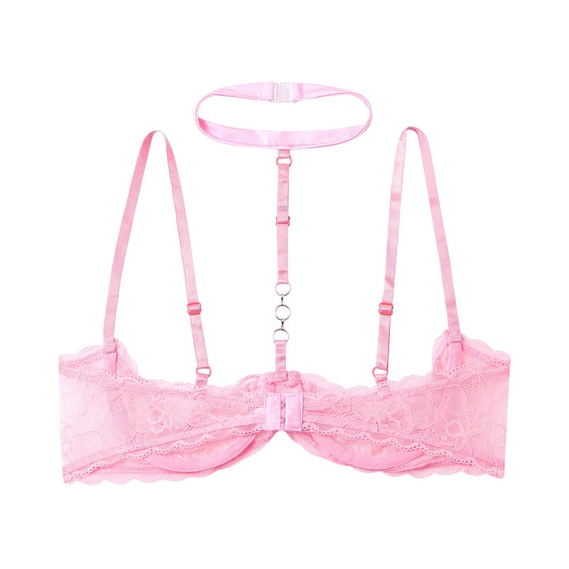 Womens 1/4 Cups Underwire Bra Halter Neck O Ring Sheer Lace Push Up Brassiere Underwear.